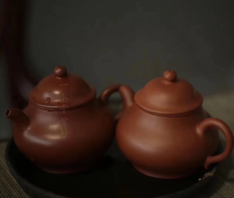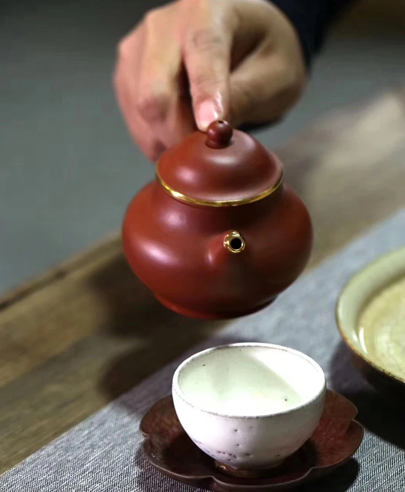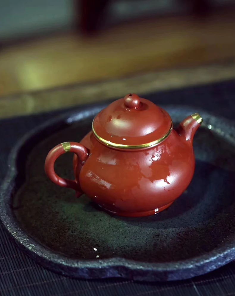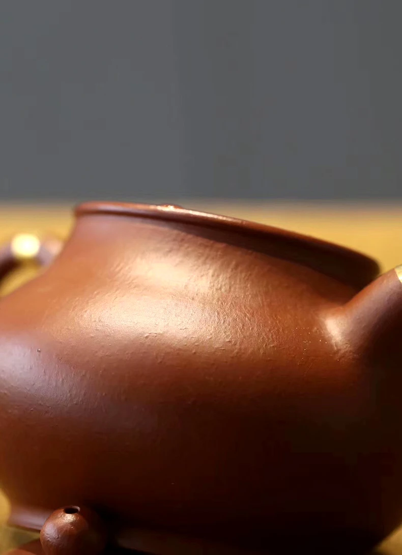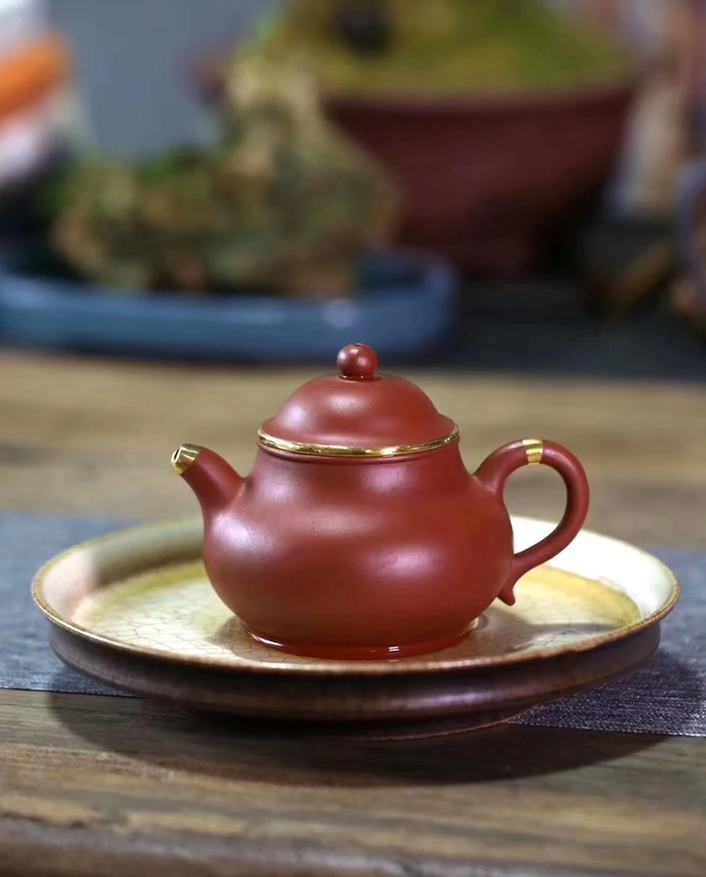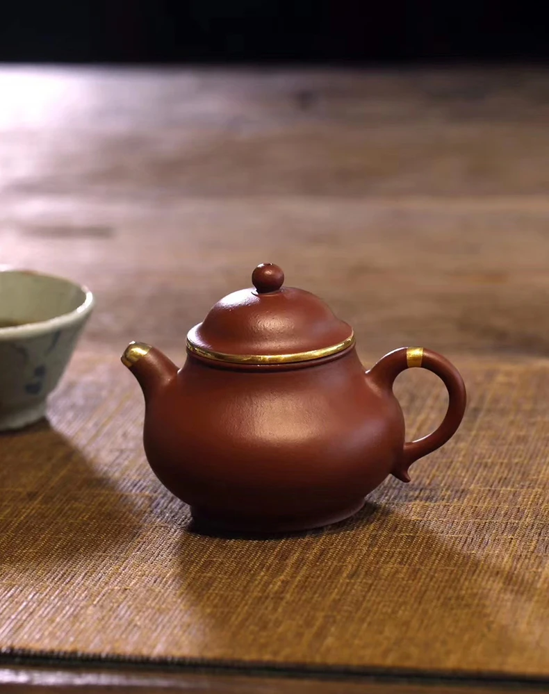 Yishuitang Yixing raw ore pure handmade purple clay pot family small coal mine vermilion clay pot bag 24K gold 180ml
