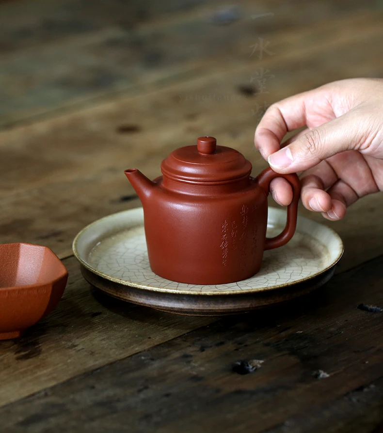 Yishuitang Yixing raw ore pure handmade purple clay pot Huanglongshan zhunigaode Zhonghu 200cc natural fold
