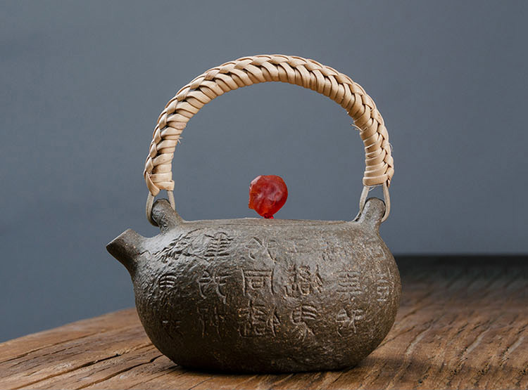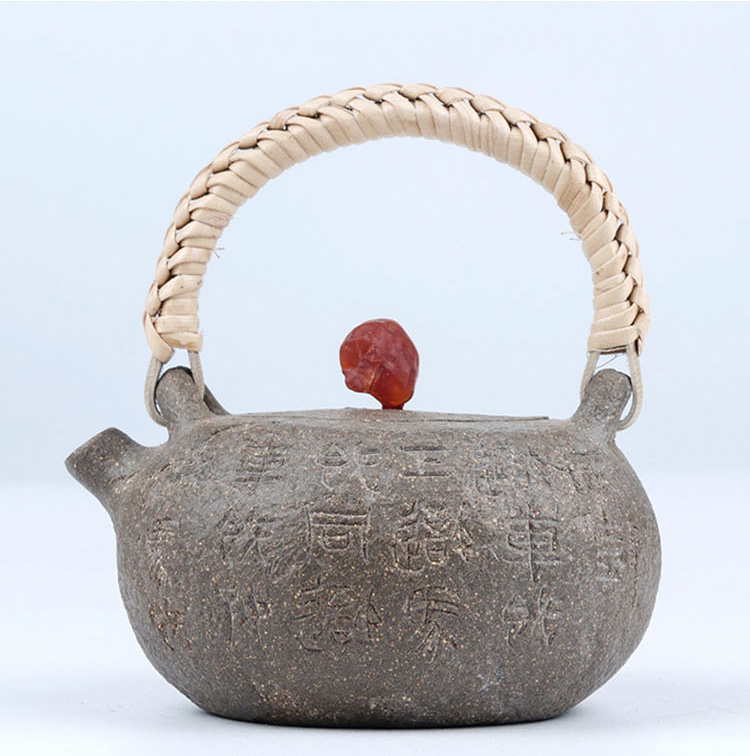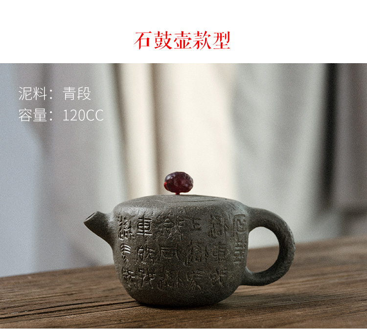 Yixing Bionic Device Purple Sand Teapot Handmade Flower Device Green Section Lifting Handle Stone Drum Pot Kombucha Teapot Purpl