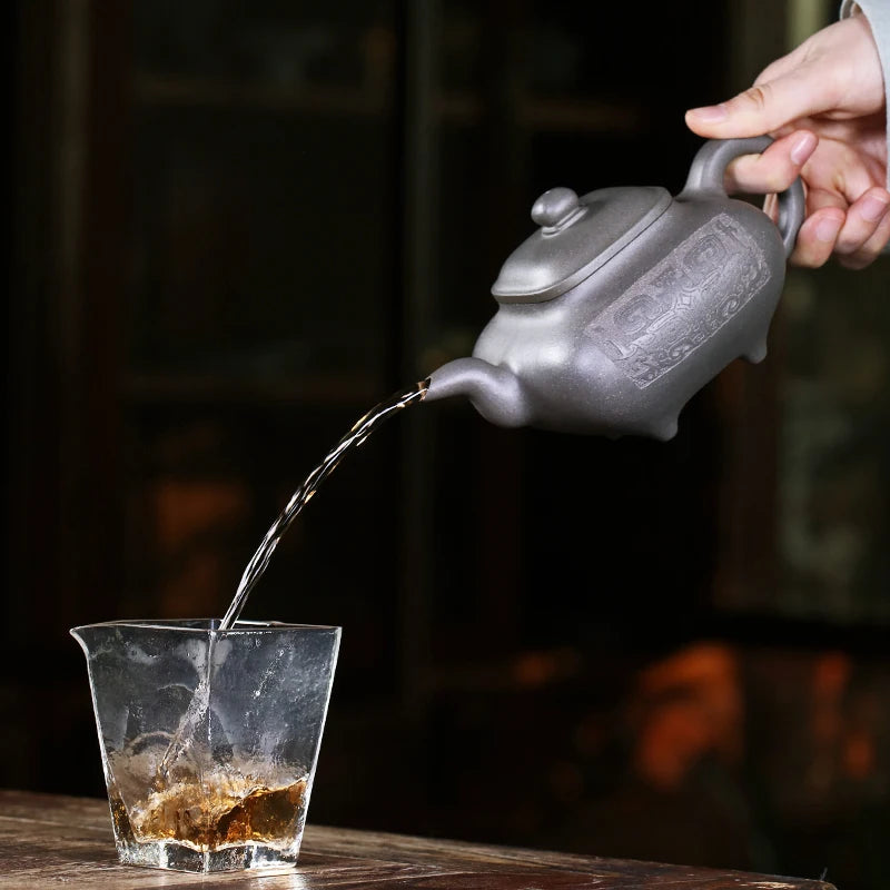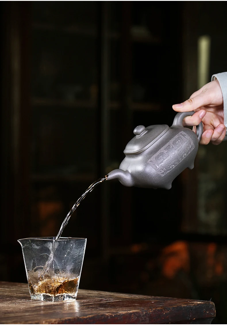 Yixing Famous Purple Clay Pot Pure Hand Engraved High Grade Tea Original Mine Old Qingduan Kung Fu Set Fully Handmade