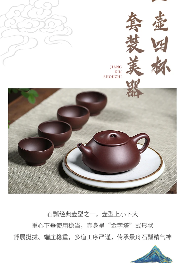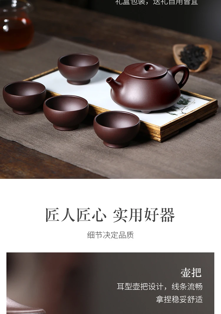 Yixing Jingzhou Stone Ladle Purple Sand Set, High End Household Boutique, Pure Handmade Health Tea Pot For Dad