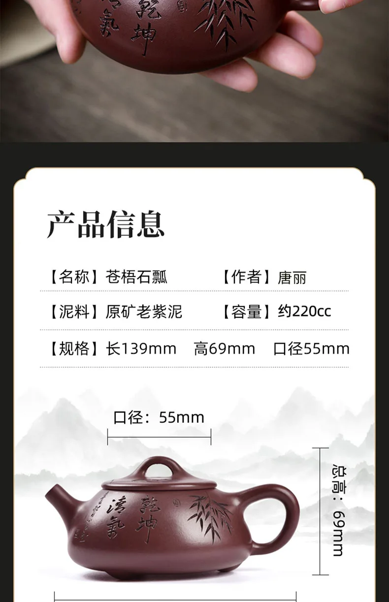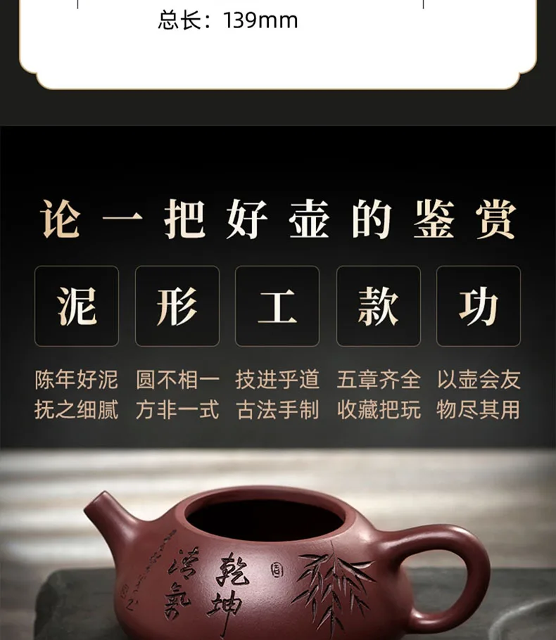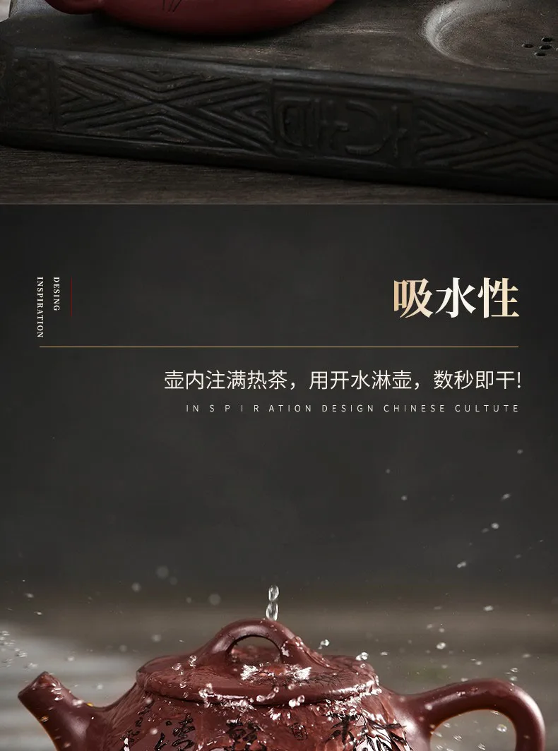 Yixing Purple Clay Handmade Boutique Stone Ladle Set, Household Tea Pot, Gift For Men