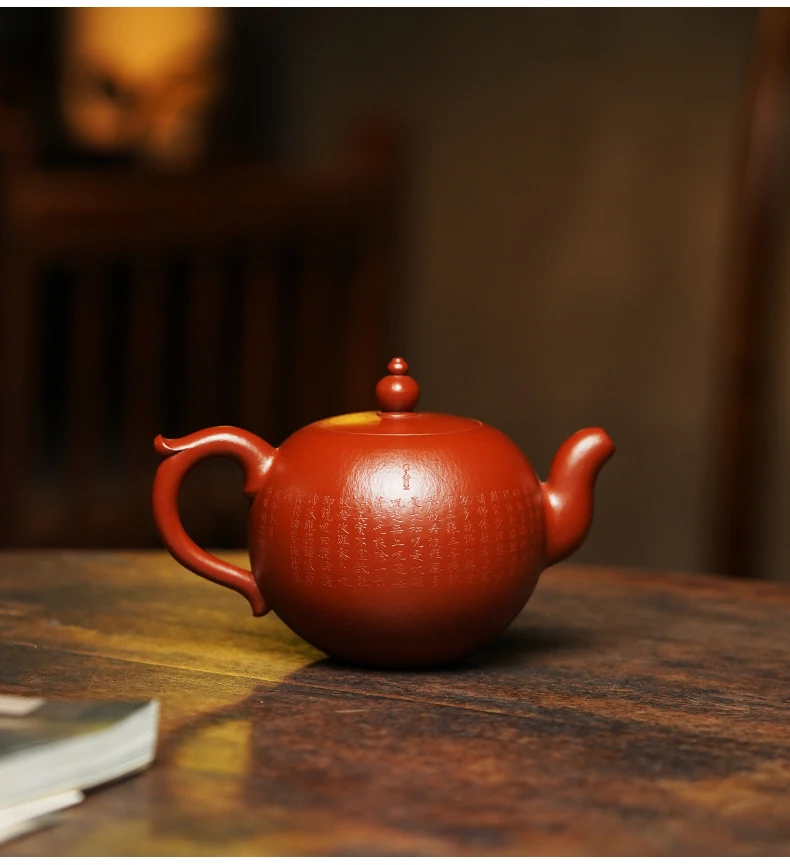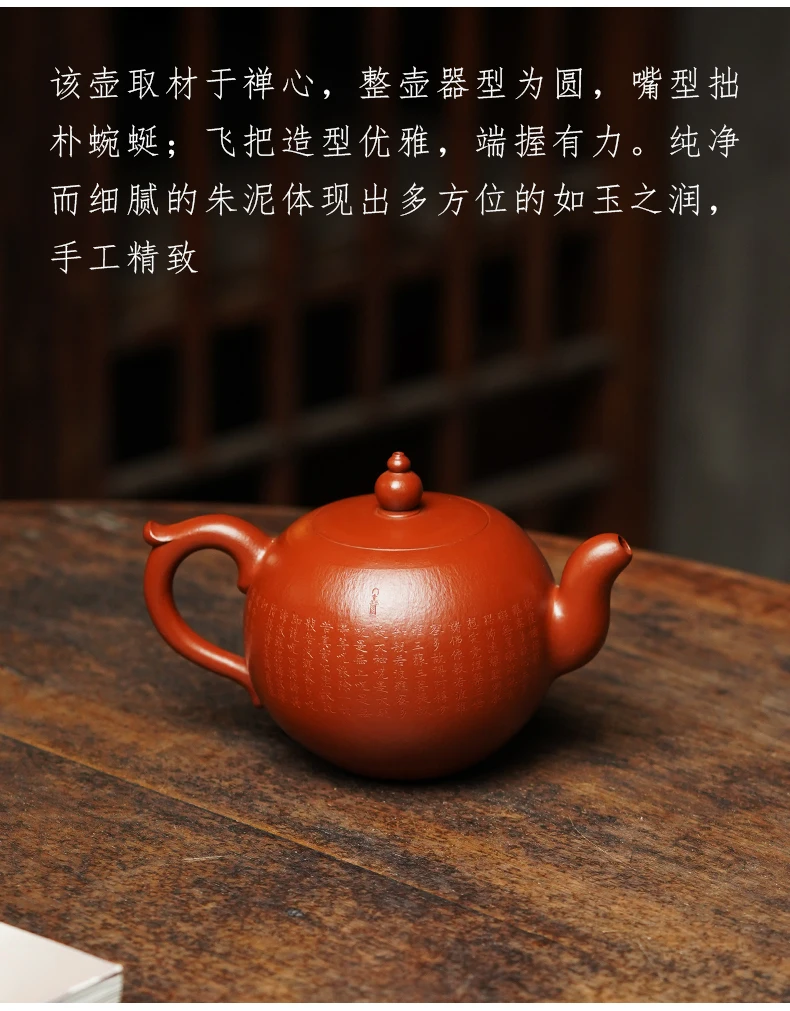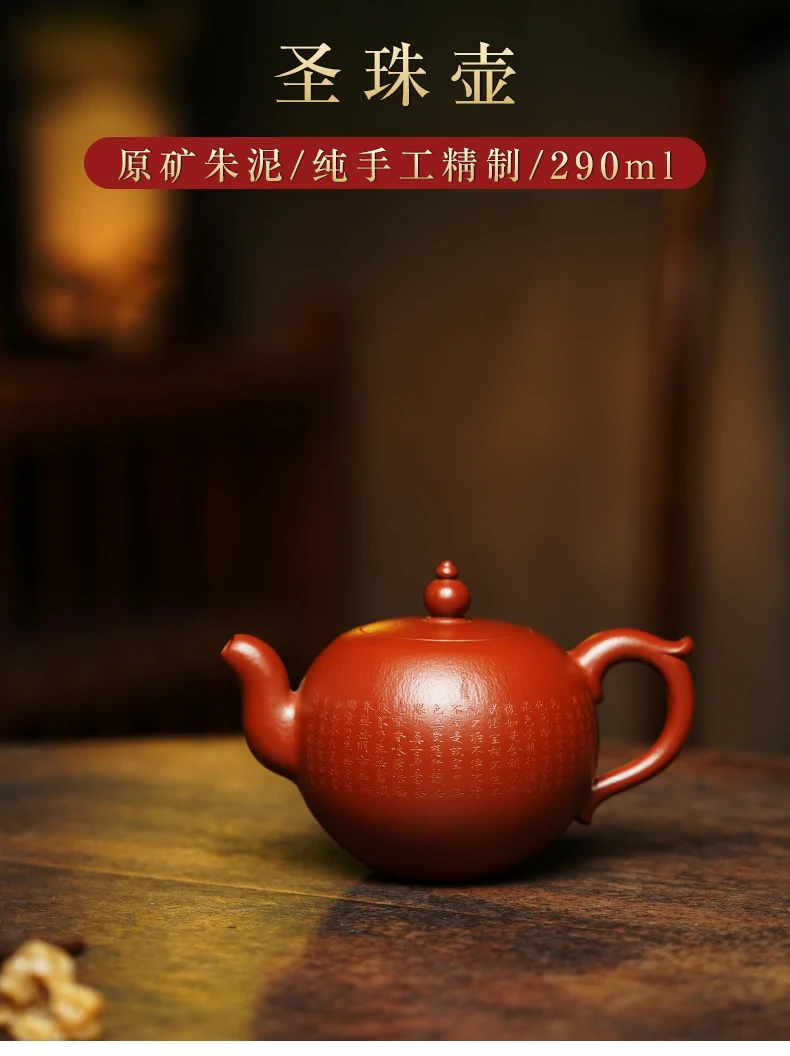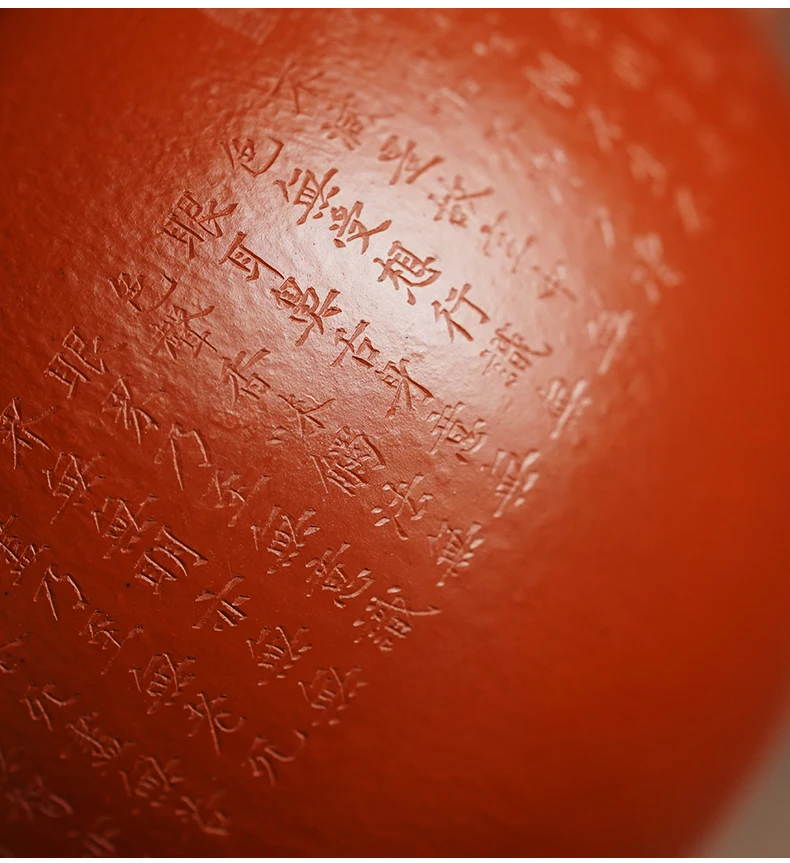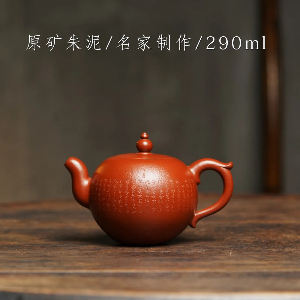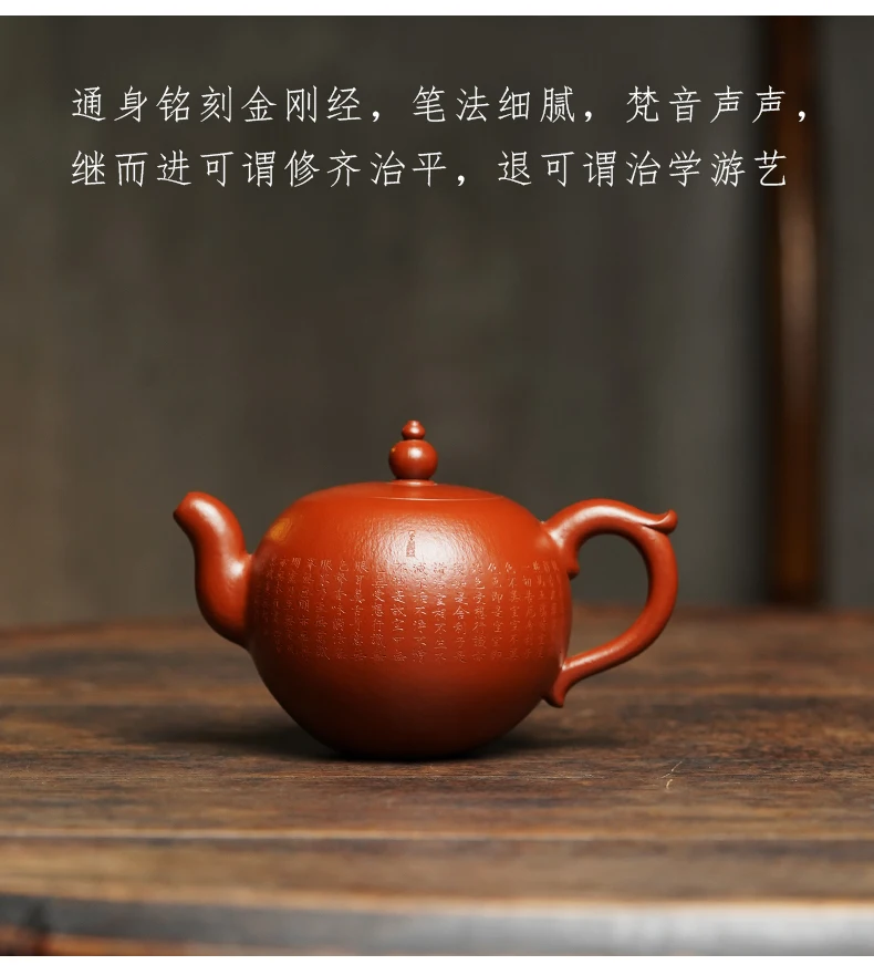 |Yixing purple clay pot made by Lei Gang, a famous craftsman, Wang chaopeng carved Heart Sutra, raw ore Zhu Ni Shengzhu