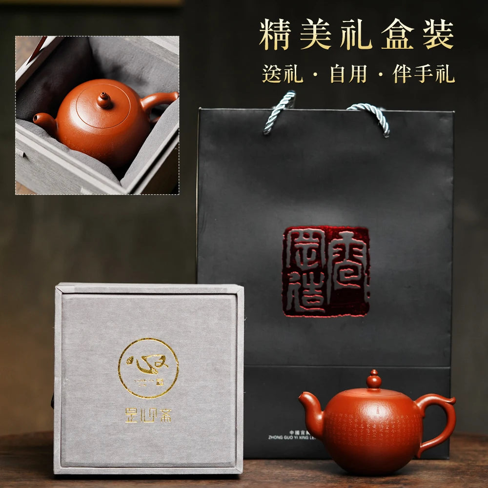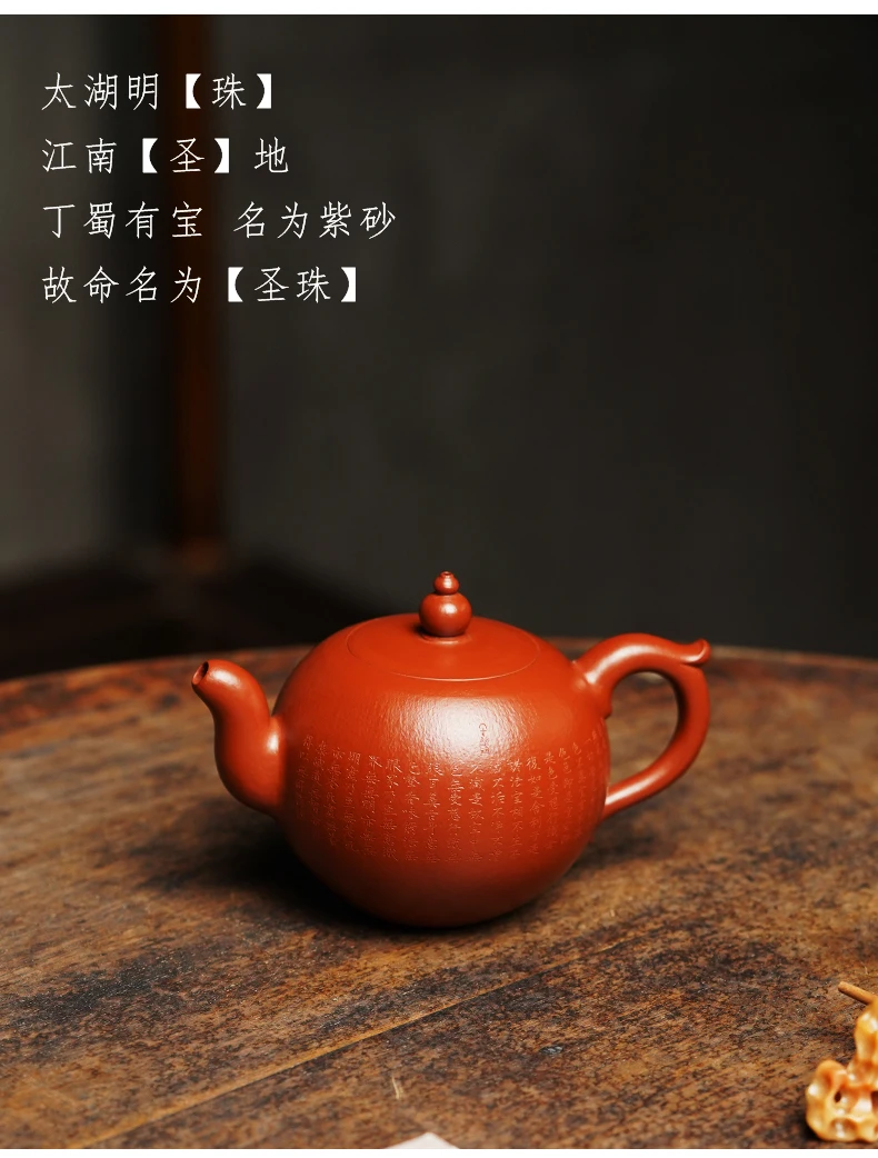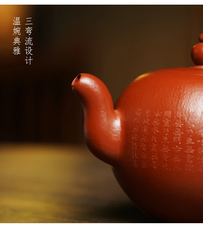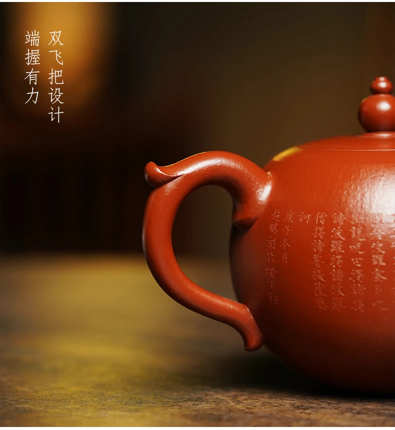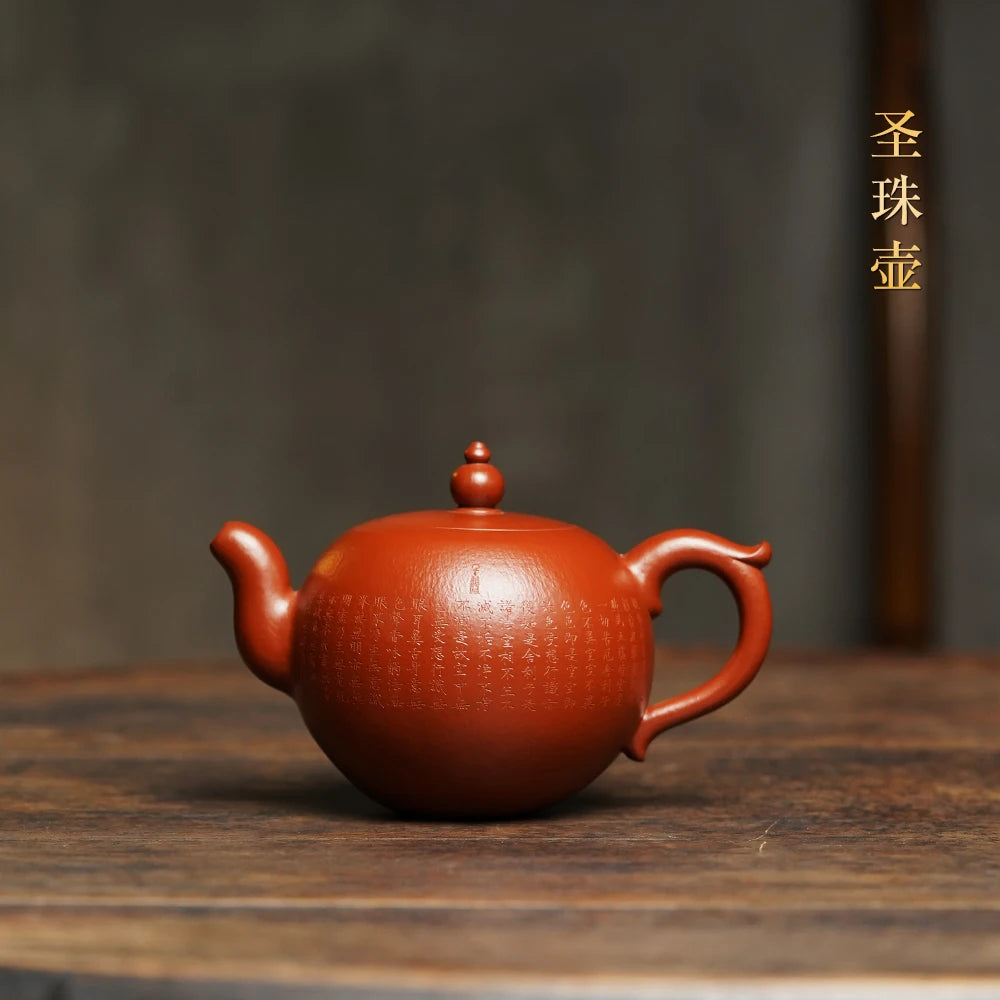 |Yixing purple clay pot made by Lei Gang, a famous craftsman, Wang chaopeng carved Heart Sutra, raw ore Zhu Ni Shengzhu