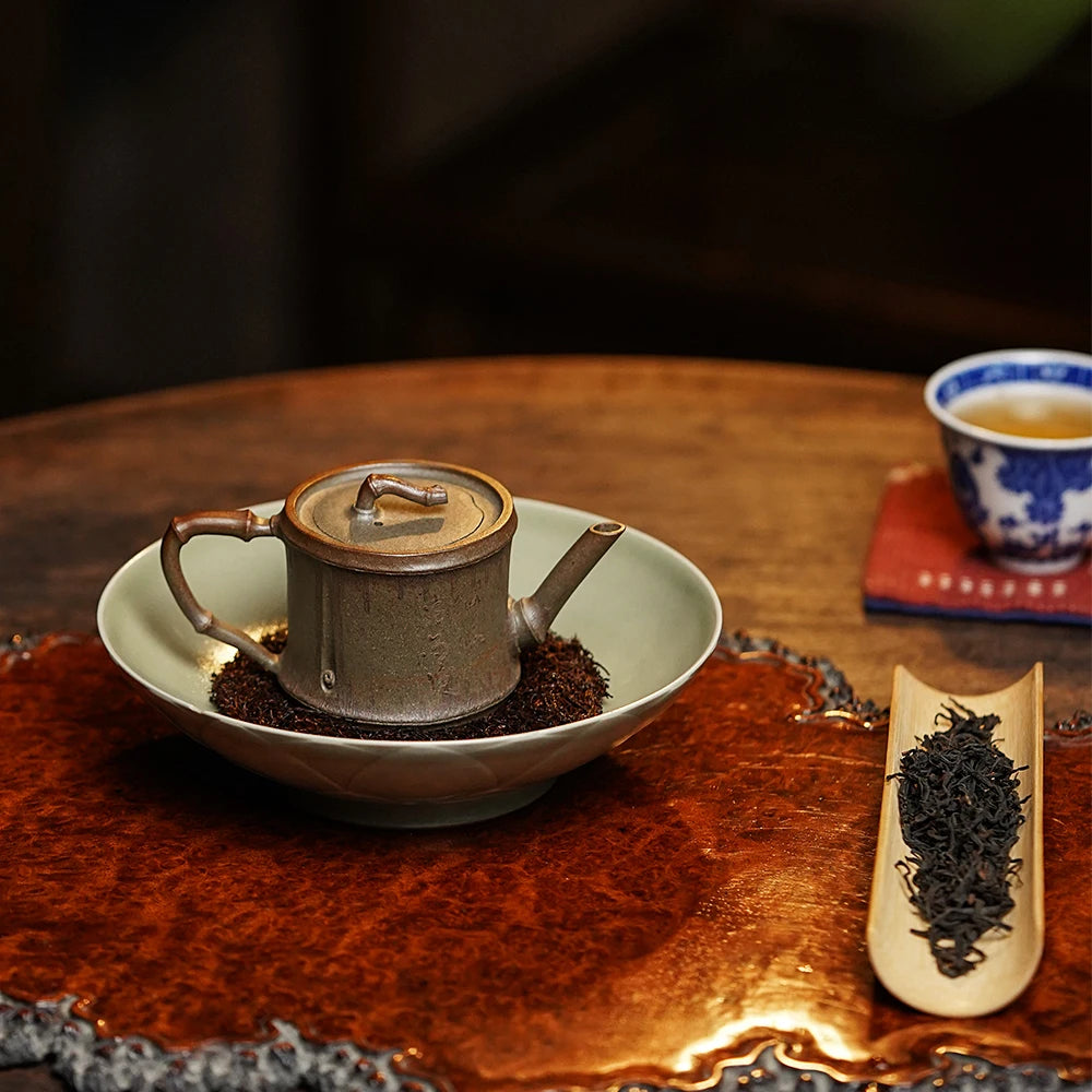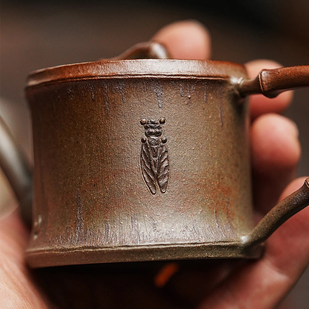 |Yixing purple clay pot master full manual Kung Fu tea set tea pot raw ore section mud firewood burning sketch 90CC