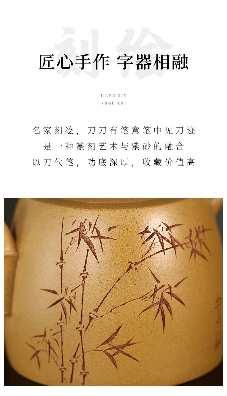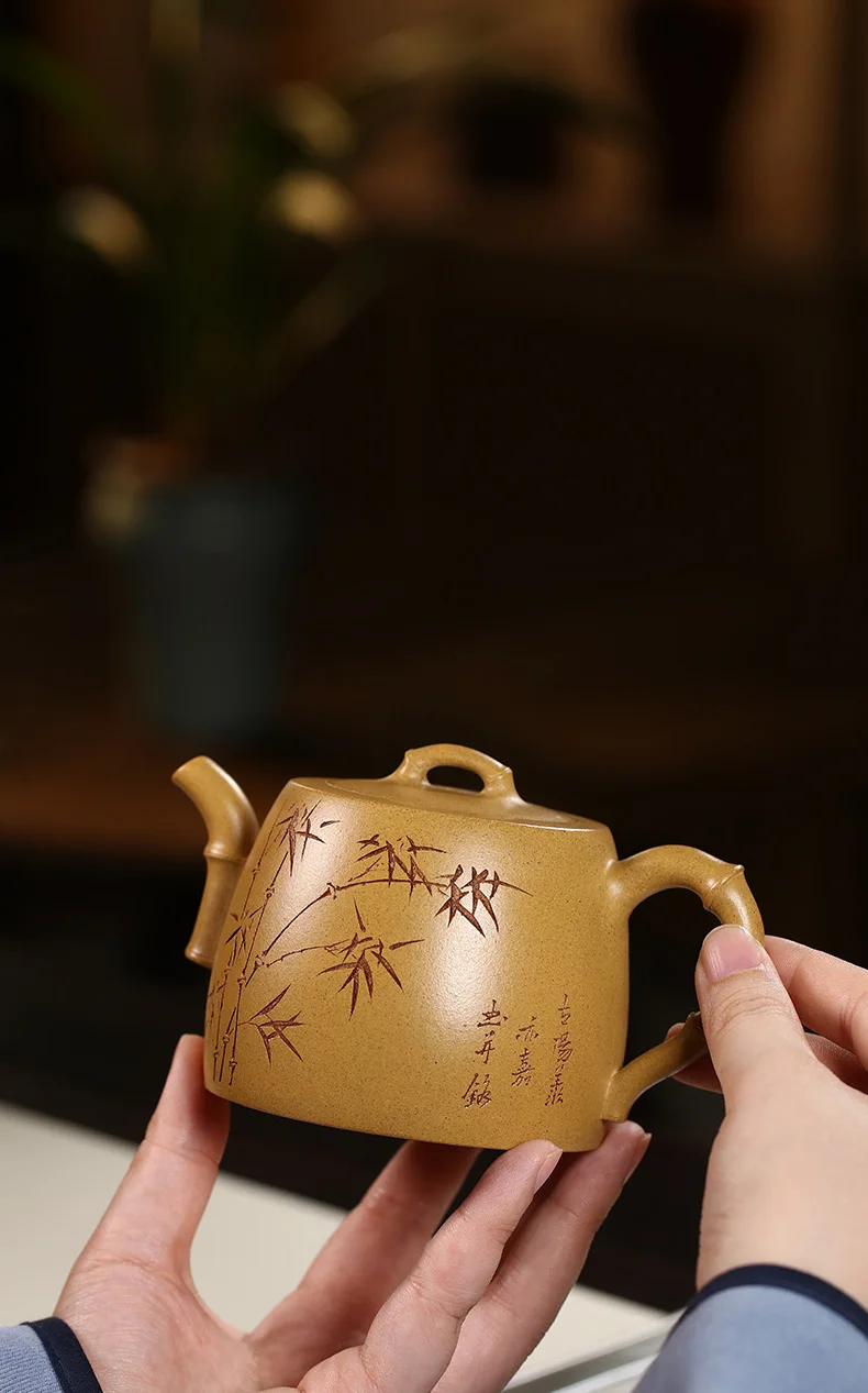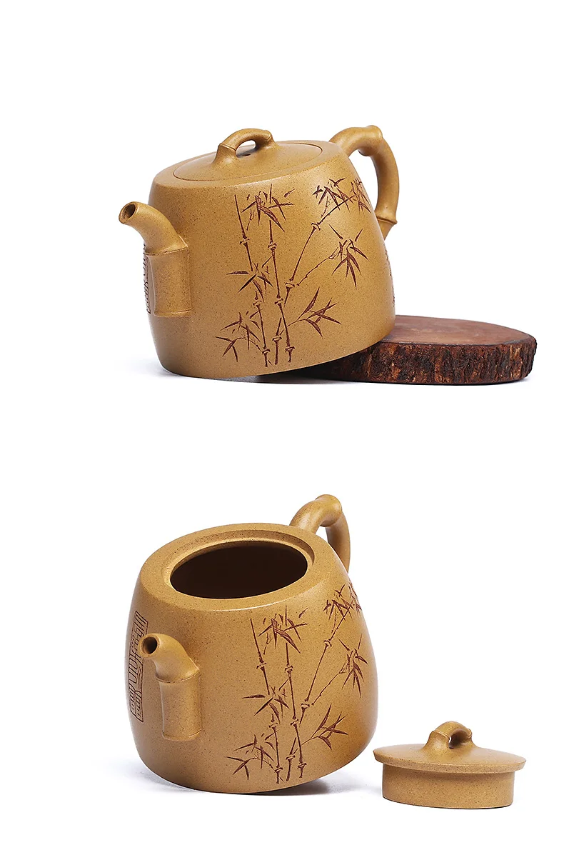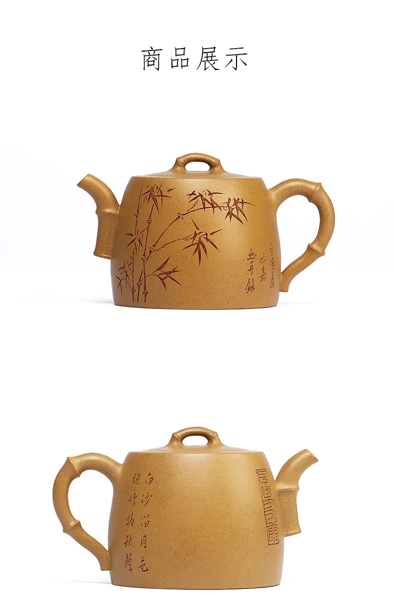 Yixing Purple Clay Pot Pure Handcarved Bamboo Section Tea Original Mine Gold Yellow Mud High Grade
