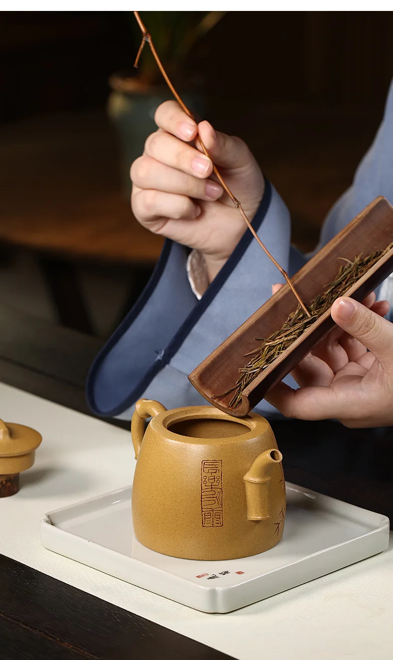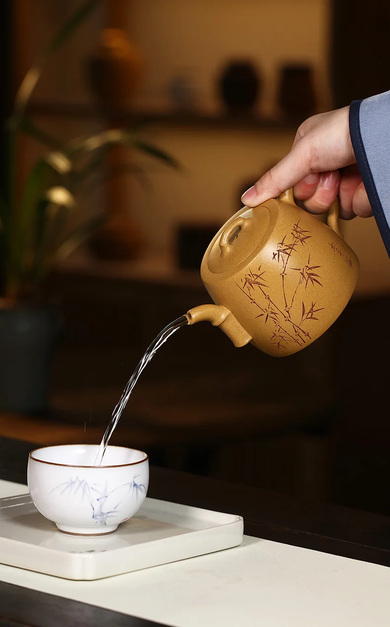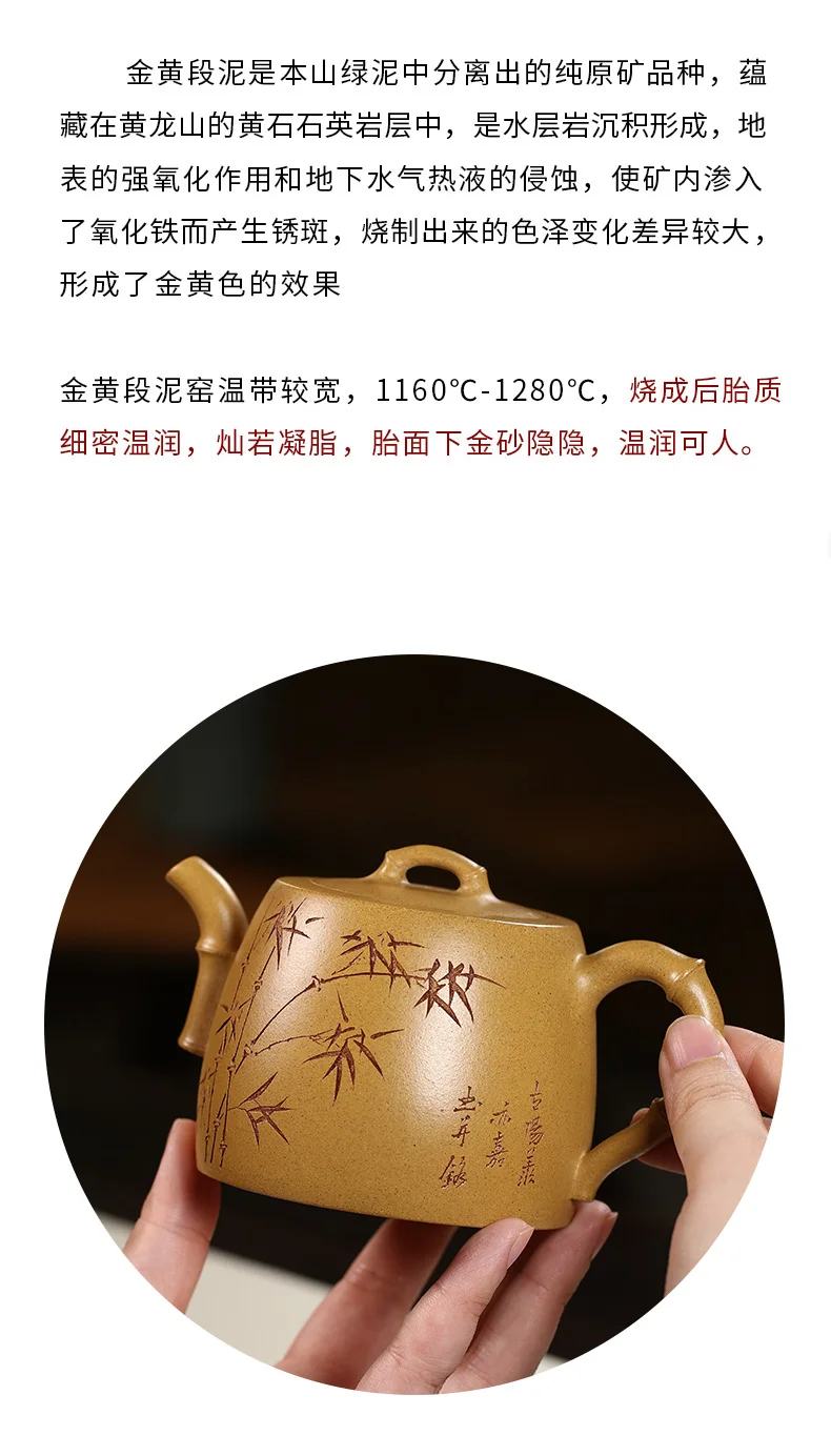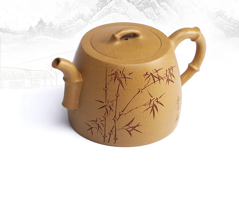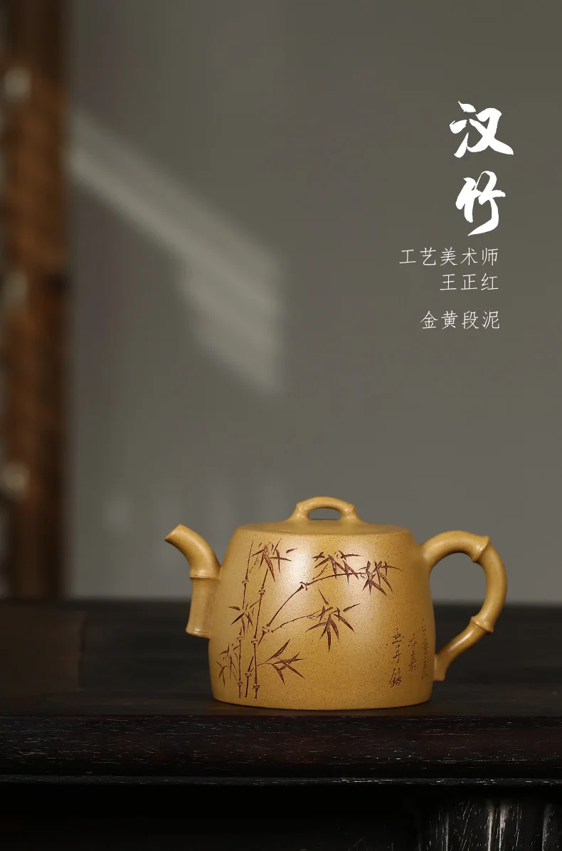 Yixing Purple Clay Pot Pure Handcarved Bamboo Section Tea Original Mine Gold Yellow Mud High Grade
