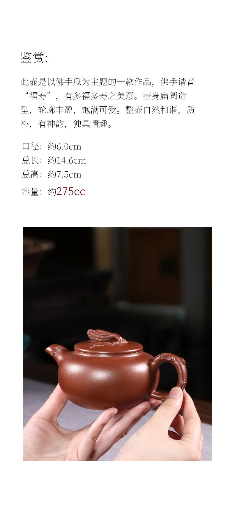 Yixing Purple Clay Pot, Pure Handmade Kung Fu Tea Set, Single Raw Mine, Zhongcao Qing, Household Buddha's Hand,