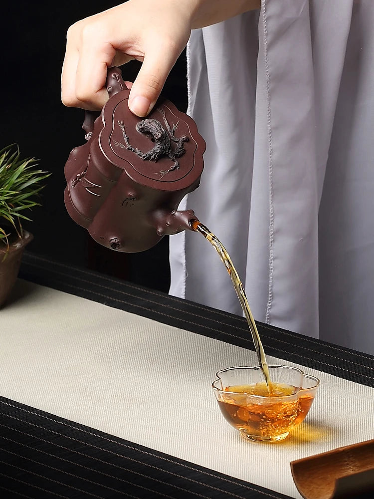 Yixing Purple Clay Pot Pure Handmade Tea Original Mine Factory 1 Old Fully Set, Flower