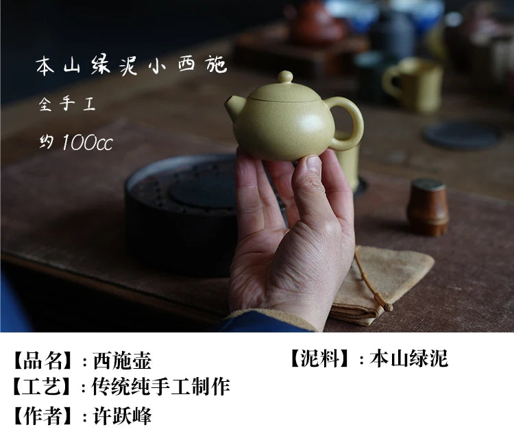 Yixing Purple Clay Pot Tea Set, Benshan Green Mud, Xu Yuefeng, Pure Handmade, Fully Small Xishi Pot, Capacity