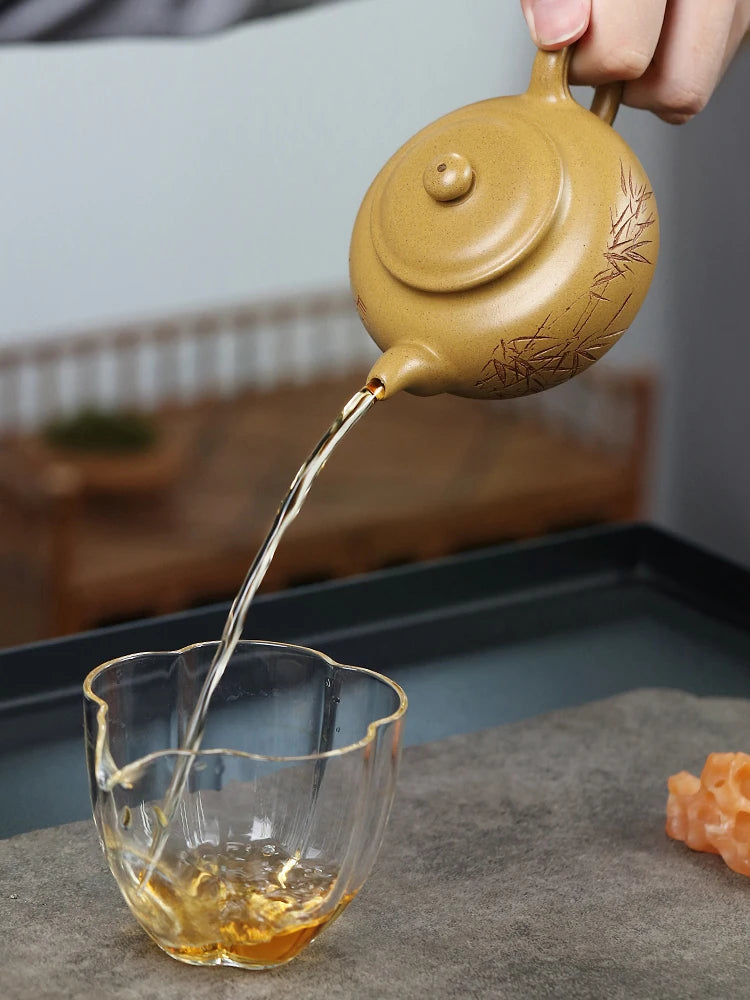 Yixing Purple Clay Pot With Pure Hand Engraving Of High Grade Tea Making Pot, Original Mine Section Mud, Fully Handmade Kung Fu