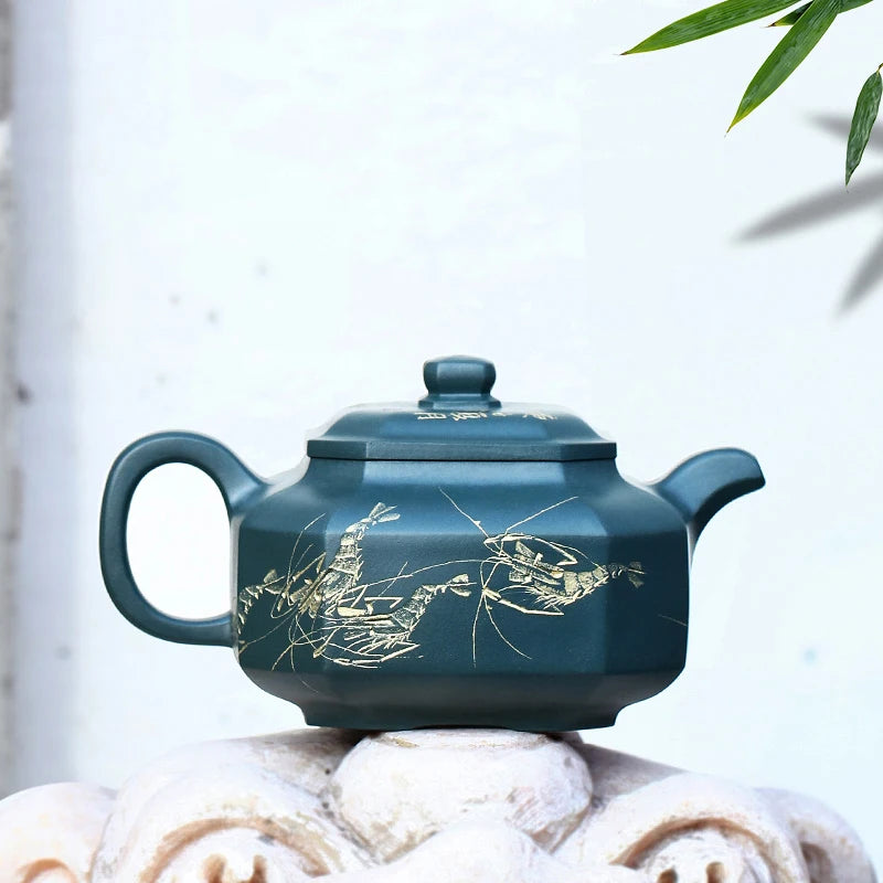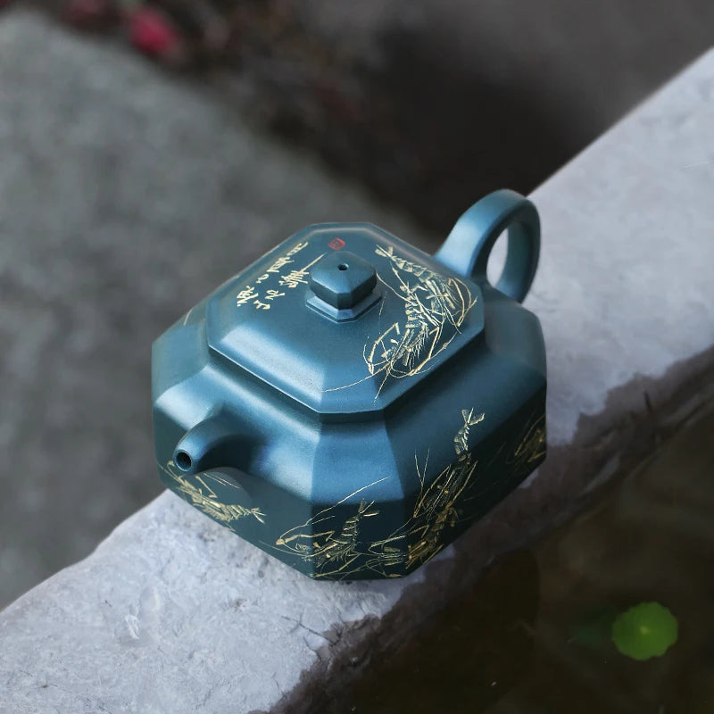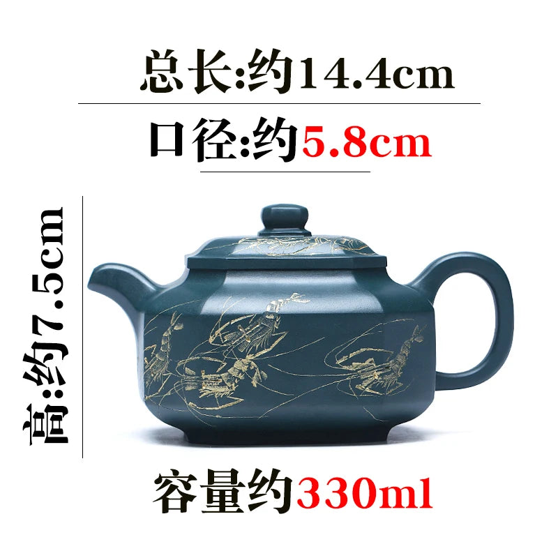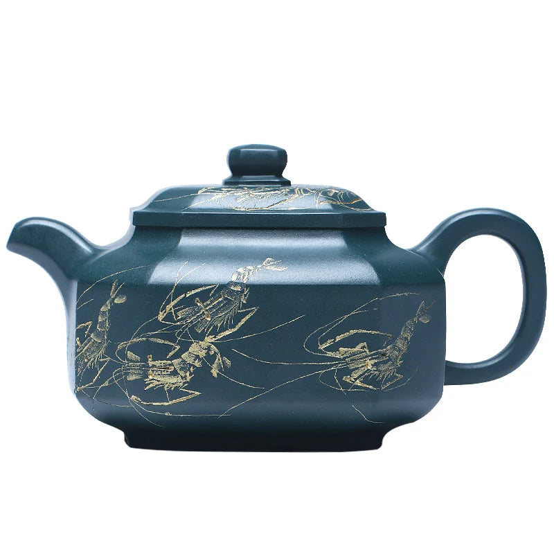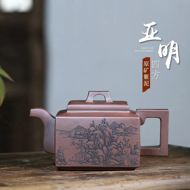 Yixing Purple Clay Teapot Handmade Carved Teapot High-Grade Purple Sand Tea Set Raw Ore Republic Of China Green Clay Square Pot