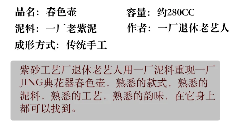 Yixing Purple Sand Pot Handmade Tea Set Factory Style Spring Color 280CC Imitation Old Ware