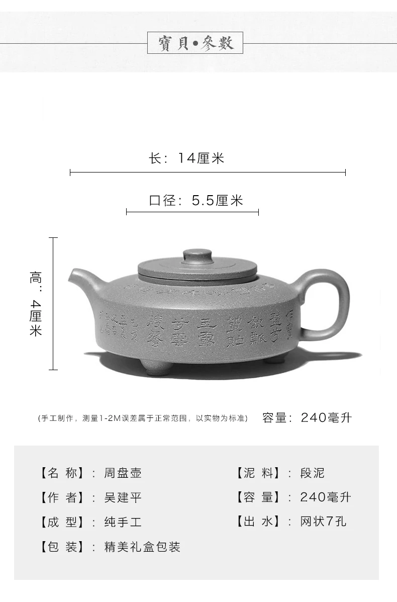 yixing undressed ore pure manual recommended Huang Longshan Zhou Pan pot of 240 cc for the ancient period of mud man