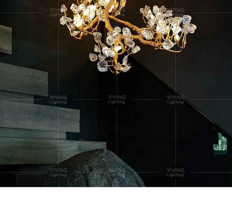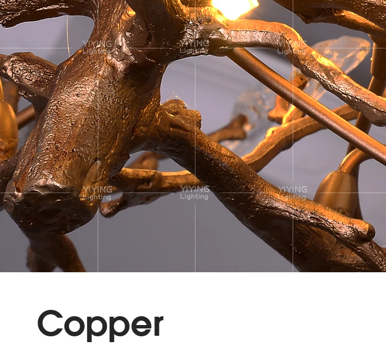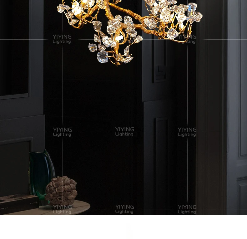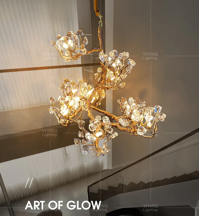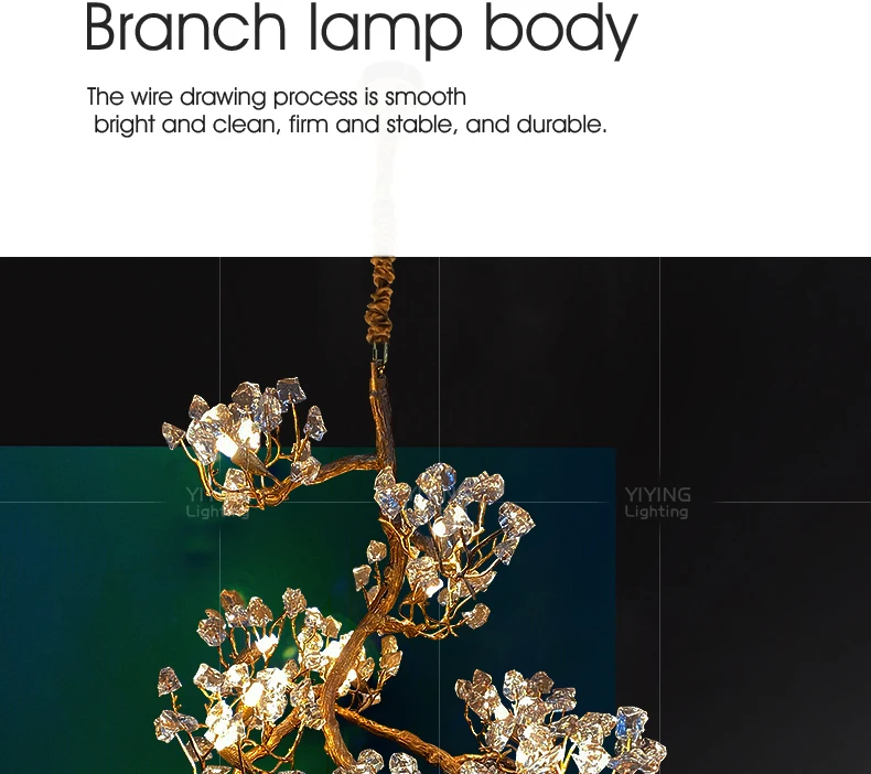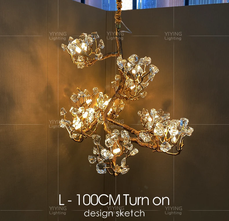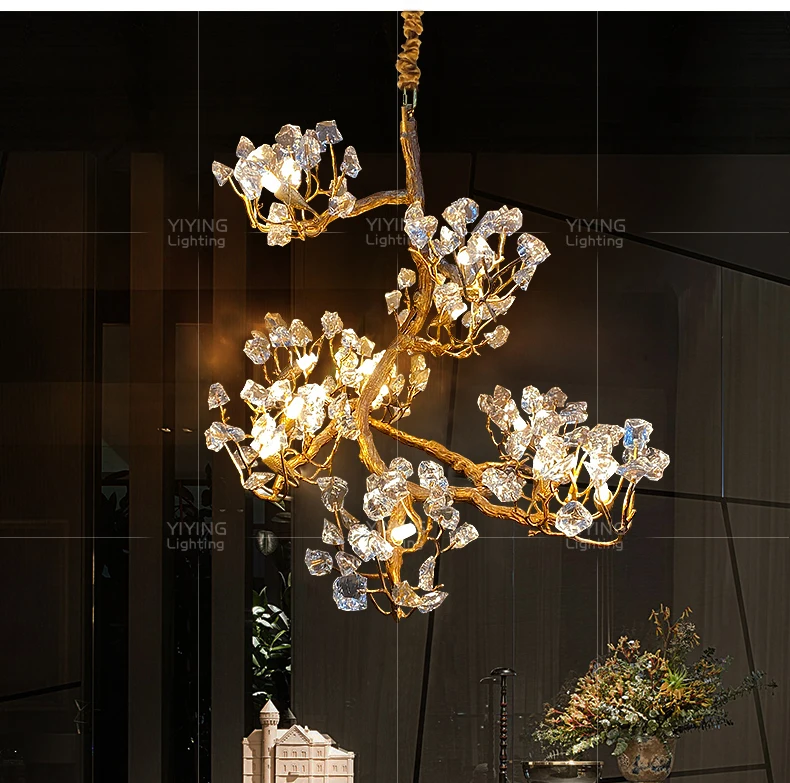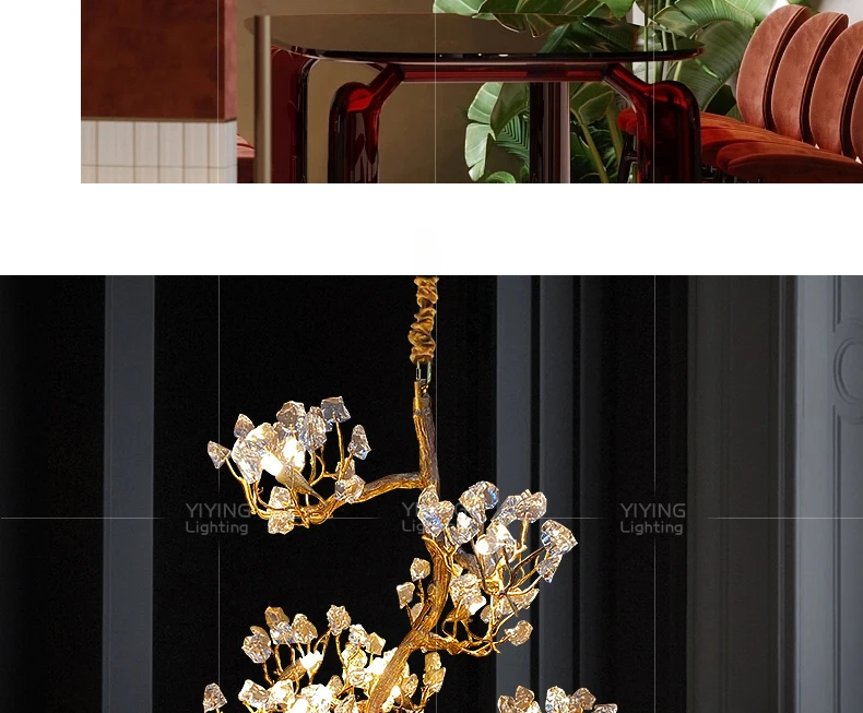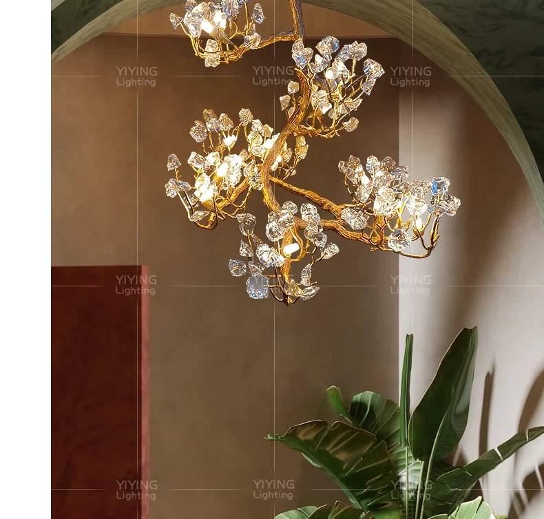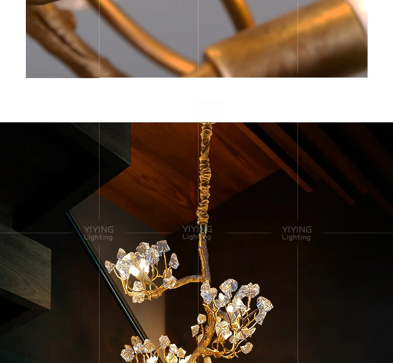 YIYINGART Postmodern living room chandelier villa crystal dining room lamp copper study tea room bar table flower chandelier