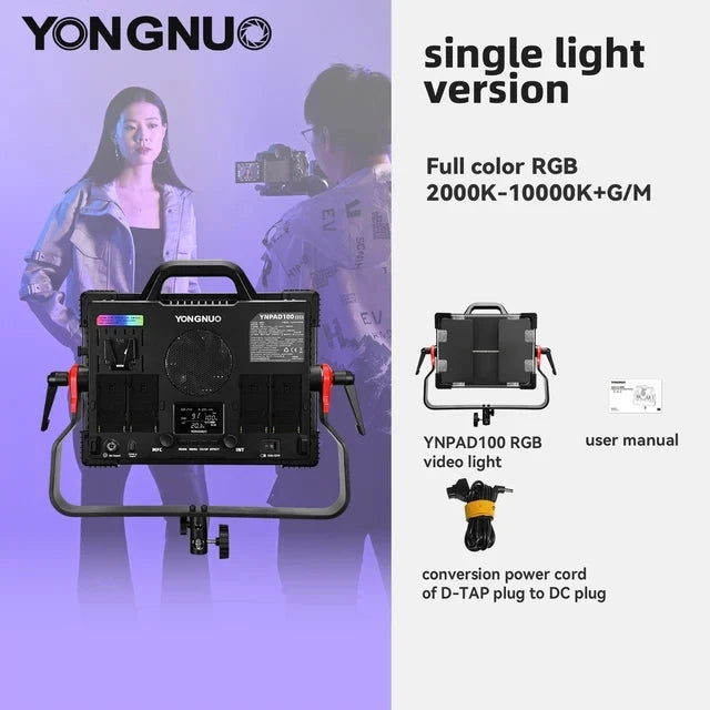 ..YONGNUO YNPAD/100 RGB Studio Video LED Panel Light with Full Color Reaches 100W for YouTube Tikok Photography Lighting