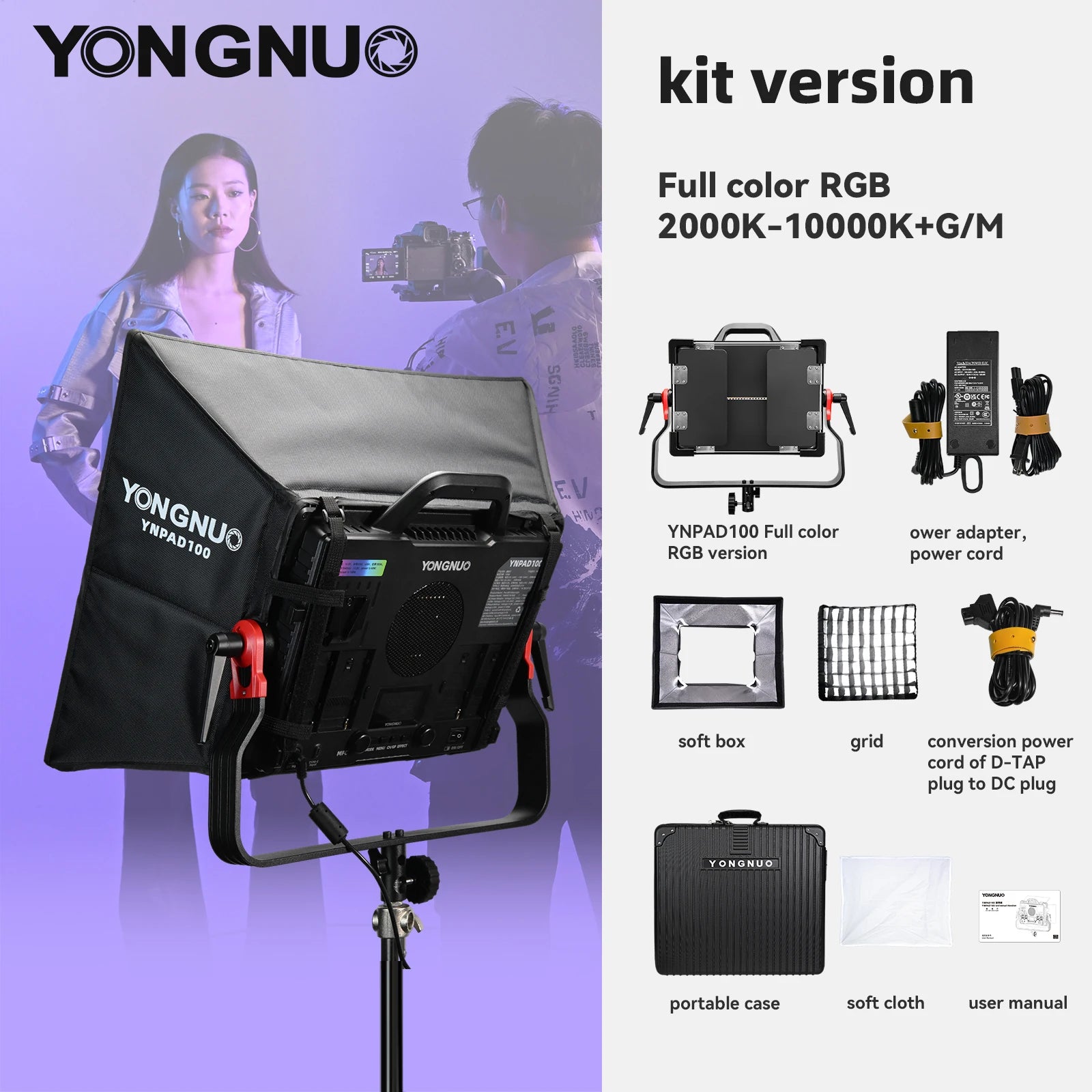 YONGNUO YNPAD/100 RGB Studio Video LED Panel Light with Full Color Reaches 100W for YouTube Tikok Photography Lighting