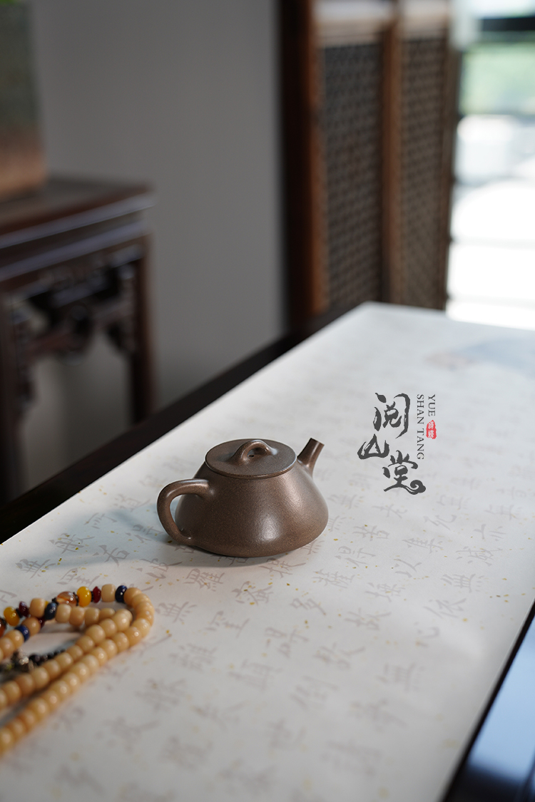 Yueshan Hall | Flat Lid Stone Ladle Sky Blue Mash Symbiotic Mine Bean Color Purple Clay Pot Lin Xiaolong Handmade