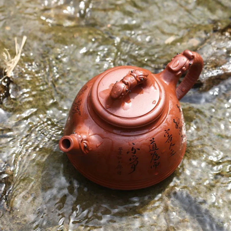 Zanghutianxia Large Capacity Yixing Purple Clay Pot Handmade Carved Purple Sand Tea Set Raw Ore Plain Cement Teapot Single Teapo