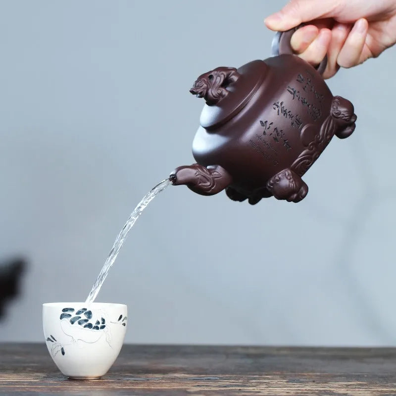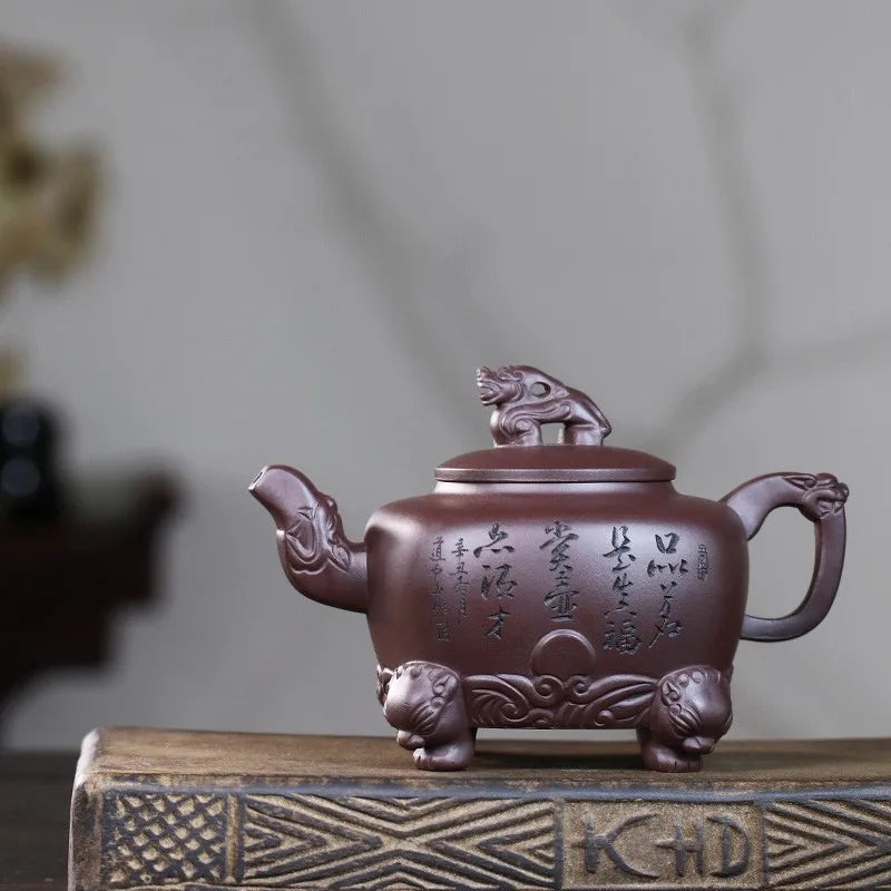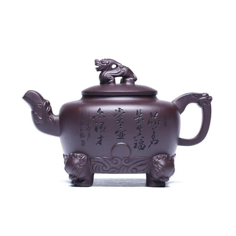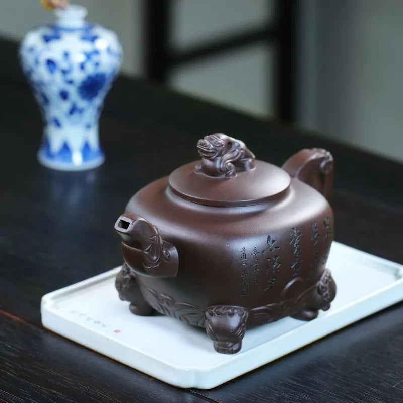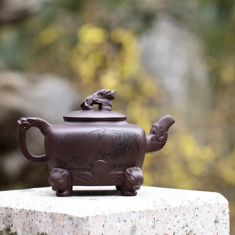 Zanghutianxia Large Capacity Yixing Purple Clay Teapot Hand-Carved Purple Sand Tea Set Raw Ore Purple Clay Teapot Square Pot All