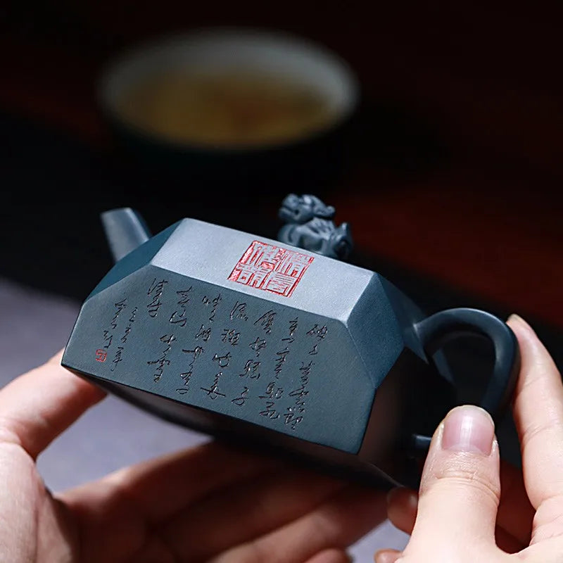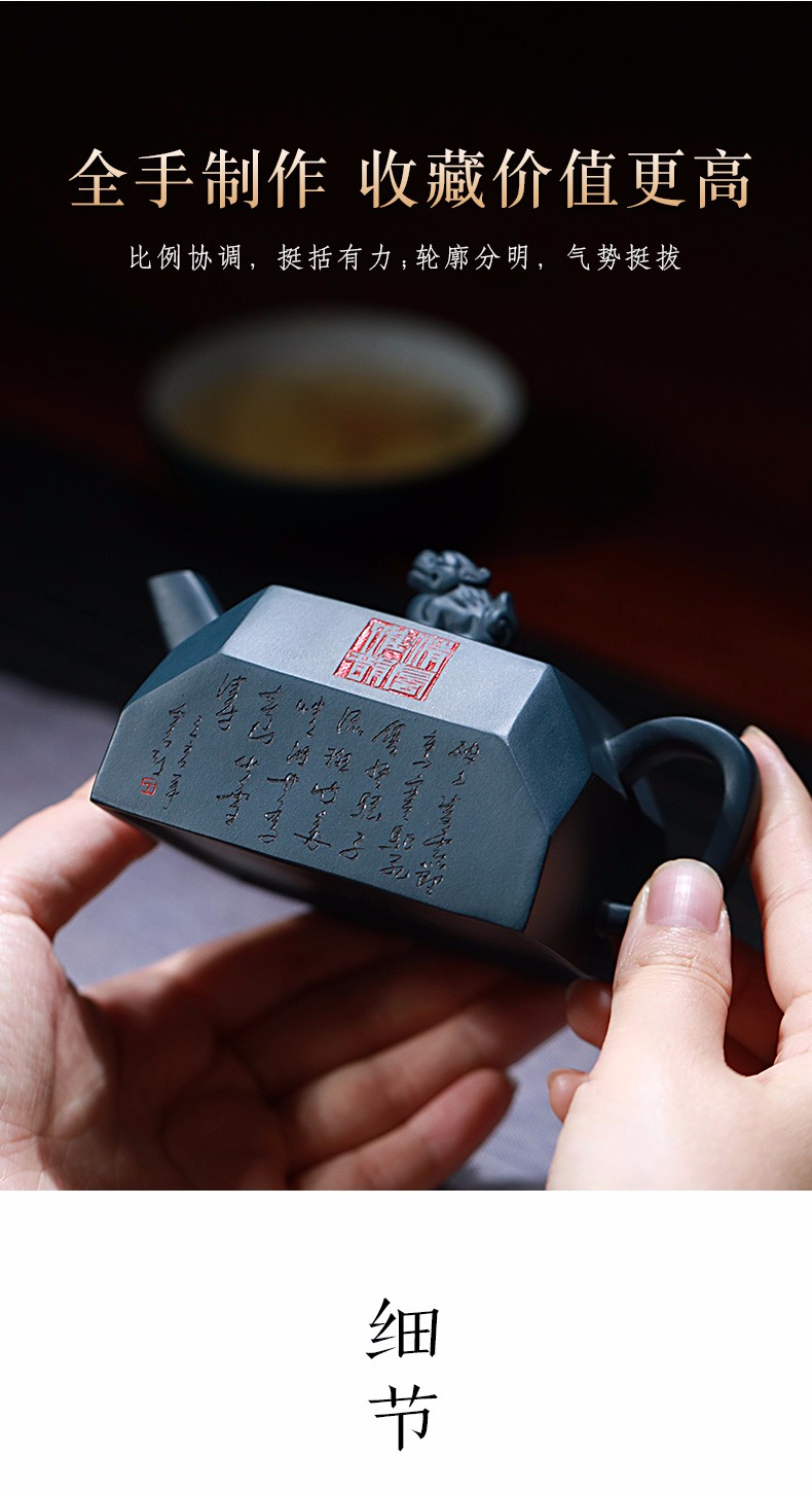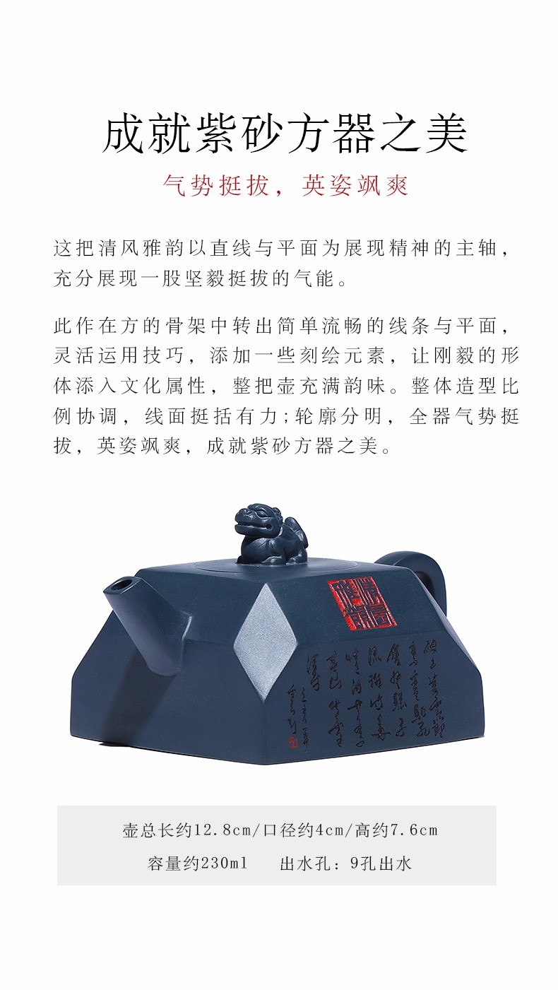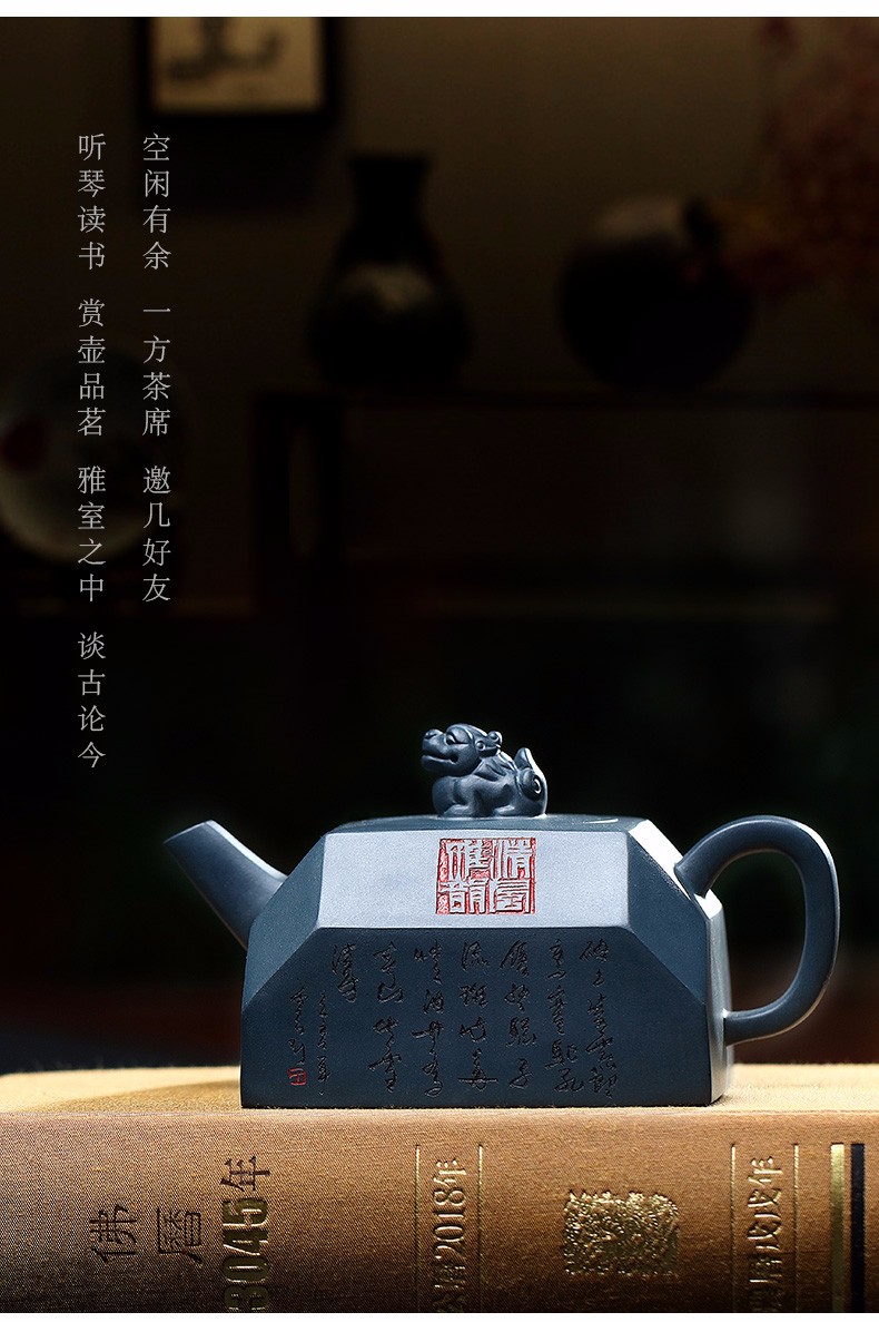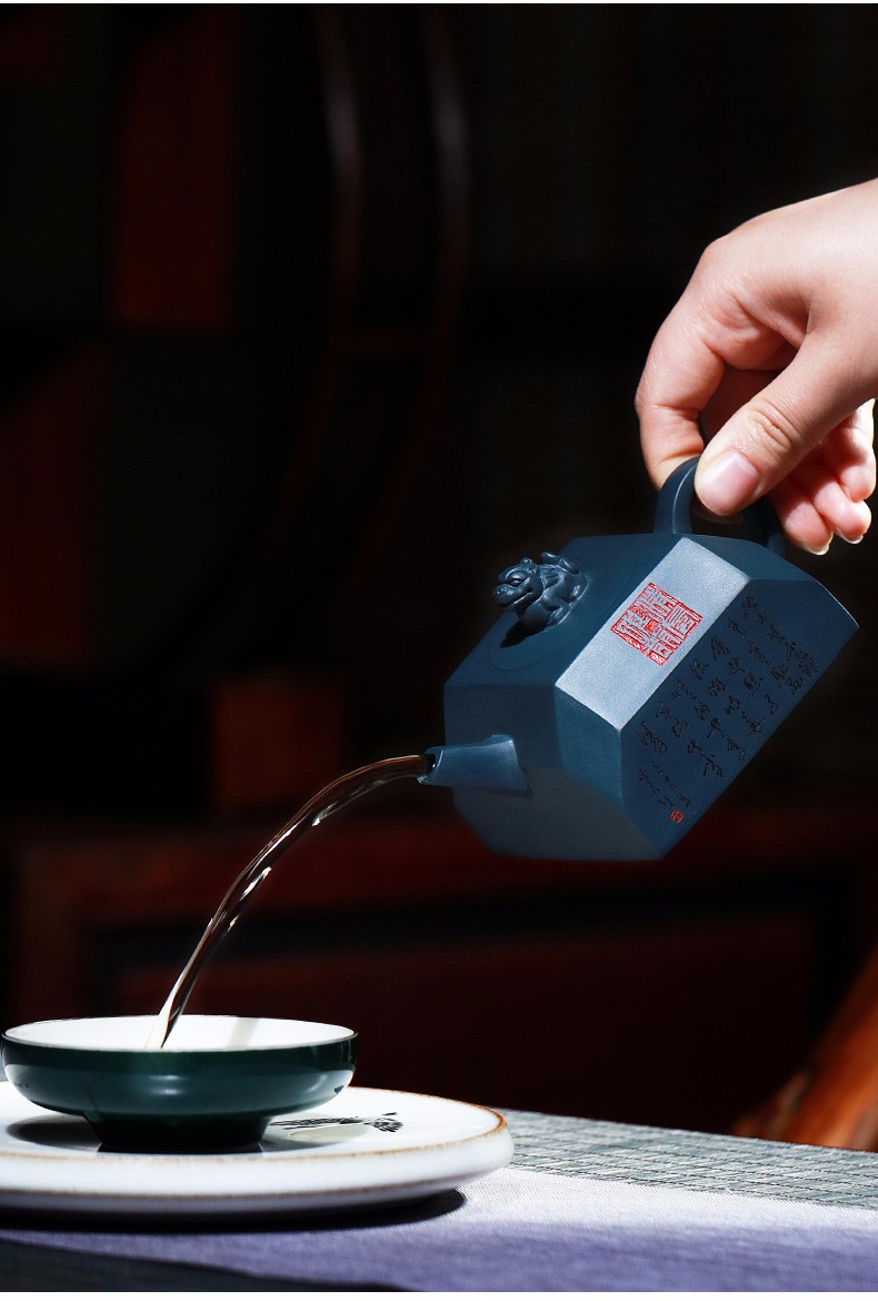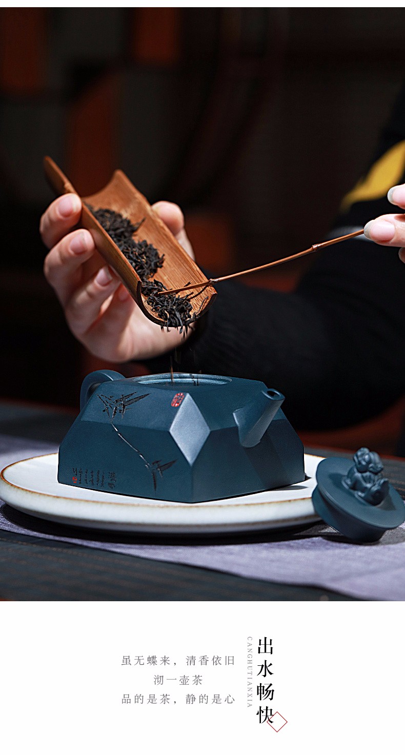 Zanghutianxia Yixing Purple Clay Pot Famous Pure Handmade Raw Ore National Green Mud Square Gongfu Teapot Fresh Style Elegant St