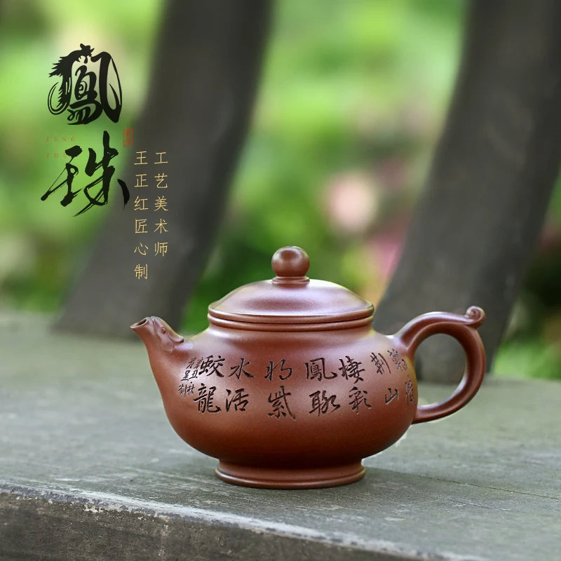 Zanghutianxia Yixing Purple Clay Pot Handmade Carved Kung Fu Tea Set Raw Ore Purple Clay Household Teapot Phoenix Beads Pot Phoe