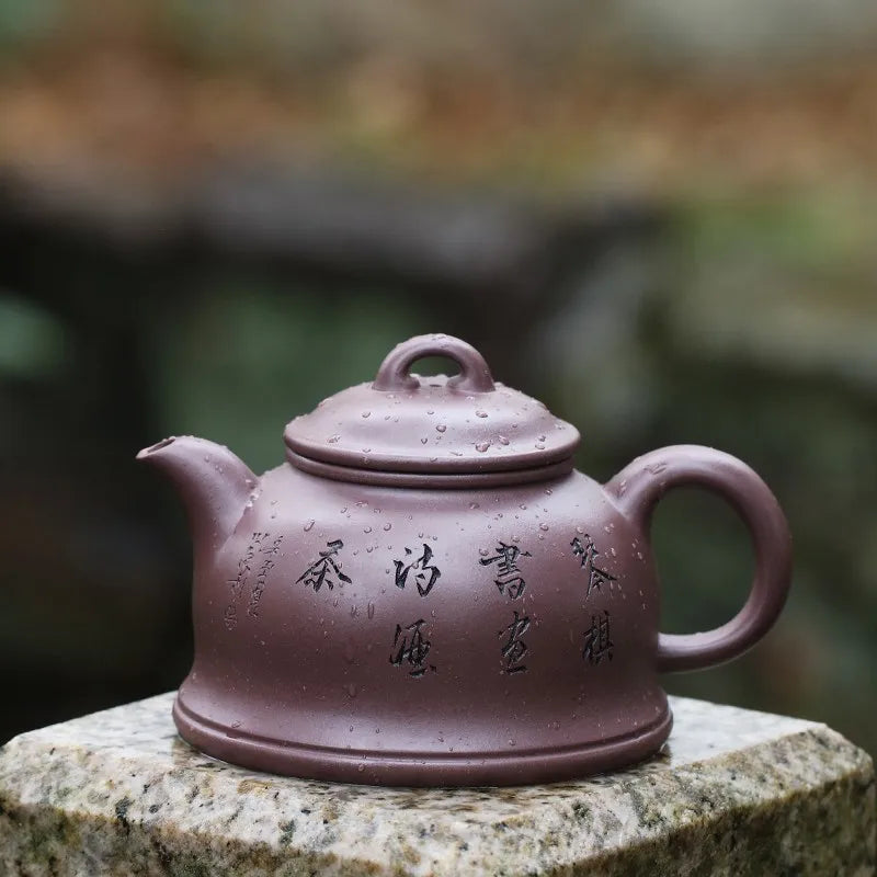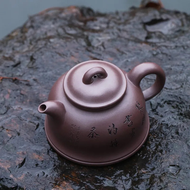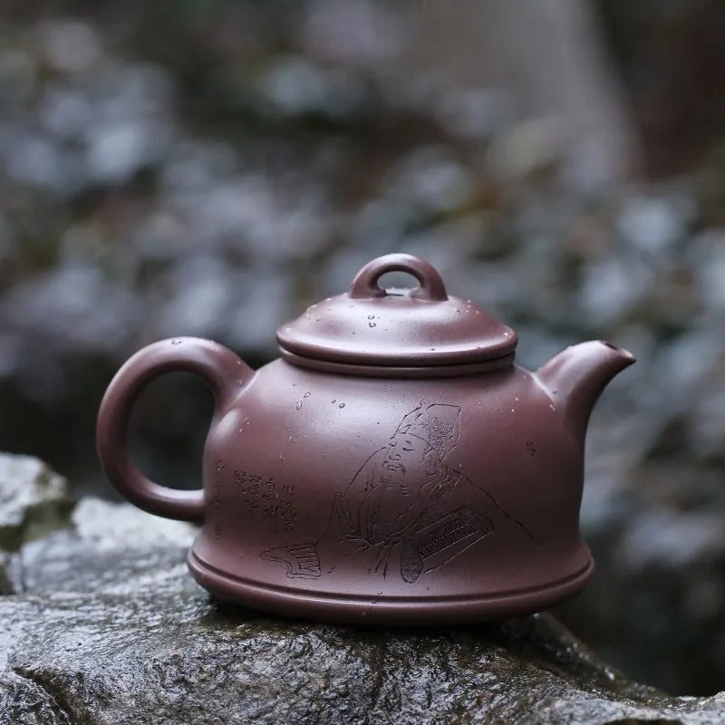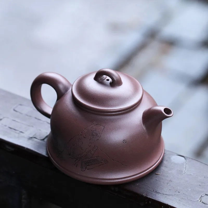 Zanghutianxia Yixing Purple Clay Pot Handmade Carving Kung Fu Teaware Single Pot Raw Ore Sky Blue Mash Handmade Teapot Runyuan P