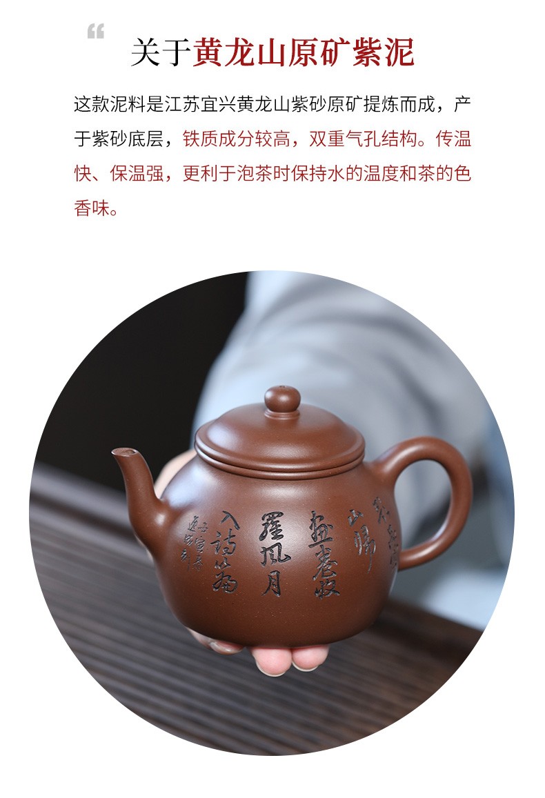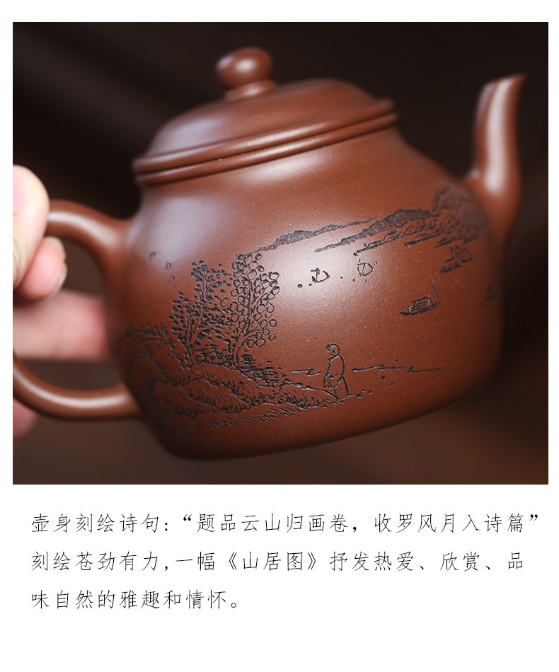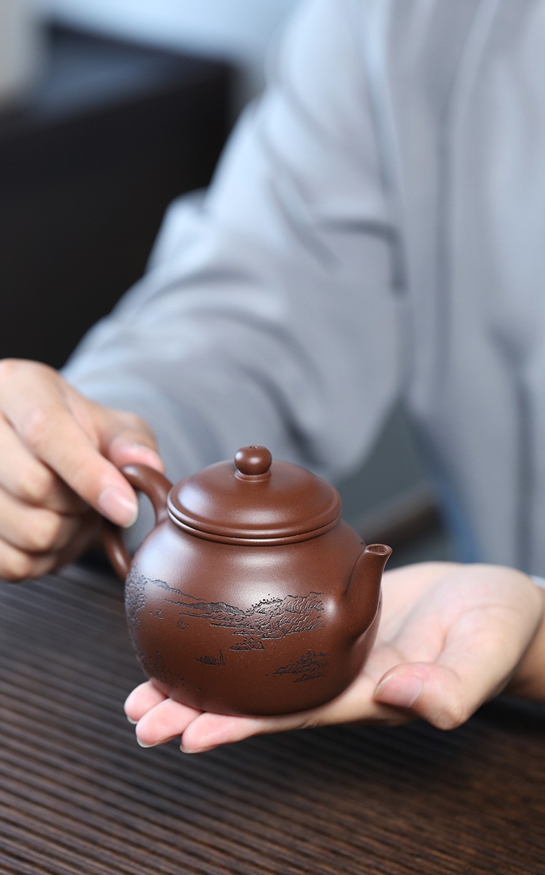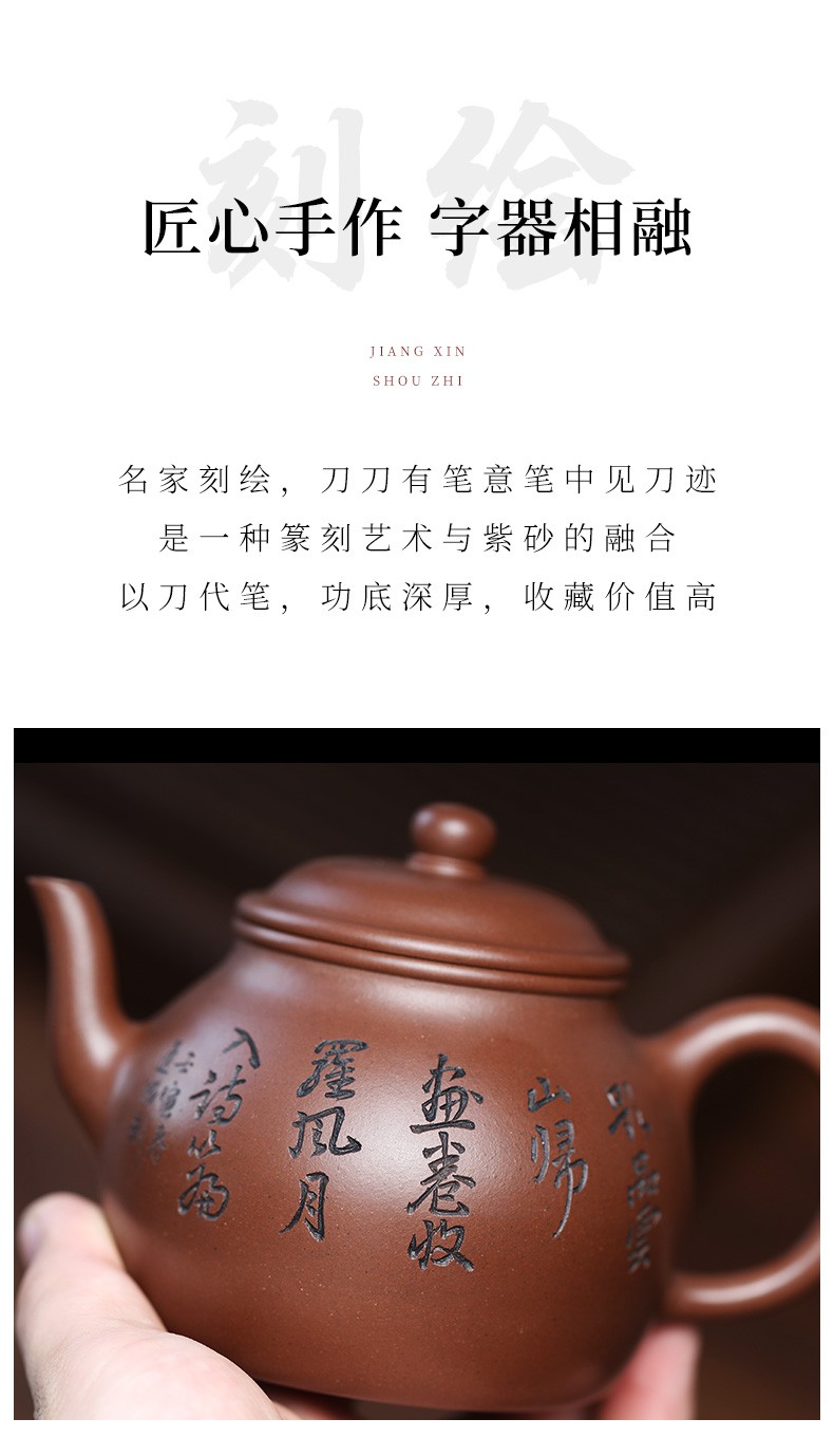 Zanghutianxia Yixing Purple Sand Pot Handmade Carved High-Grade Purple Sand Teaware Single Pot Raw Ore Purple Clay Handmade Teap