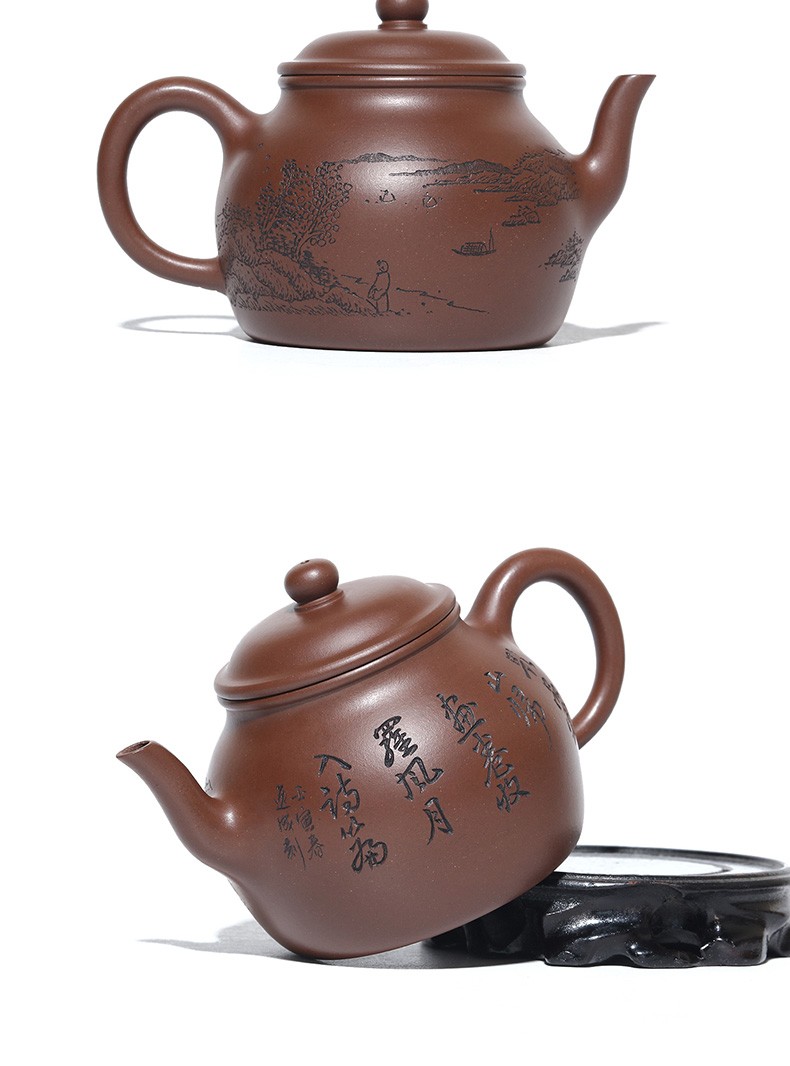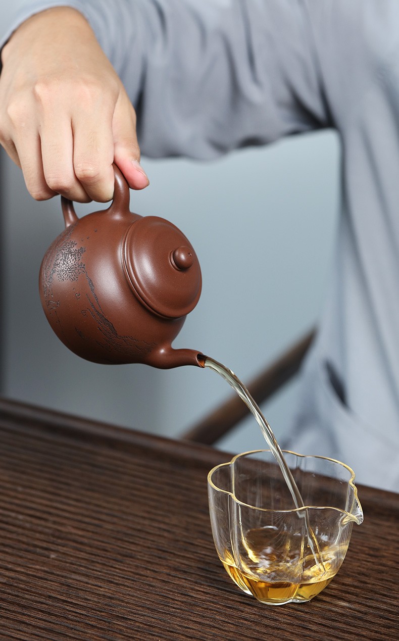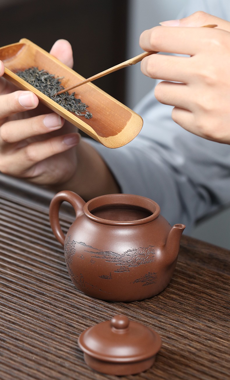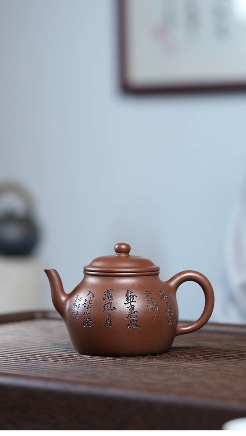 Zanghutianxia Yixing Purple Sand Pot Handmade Carved High-Grade Purple Sand Teaware Single Pot Raw Ore Purple Clay Handmade Teap