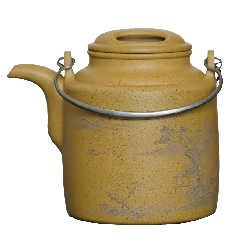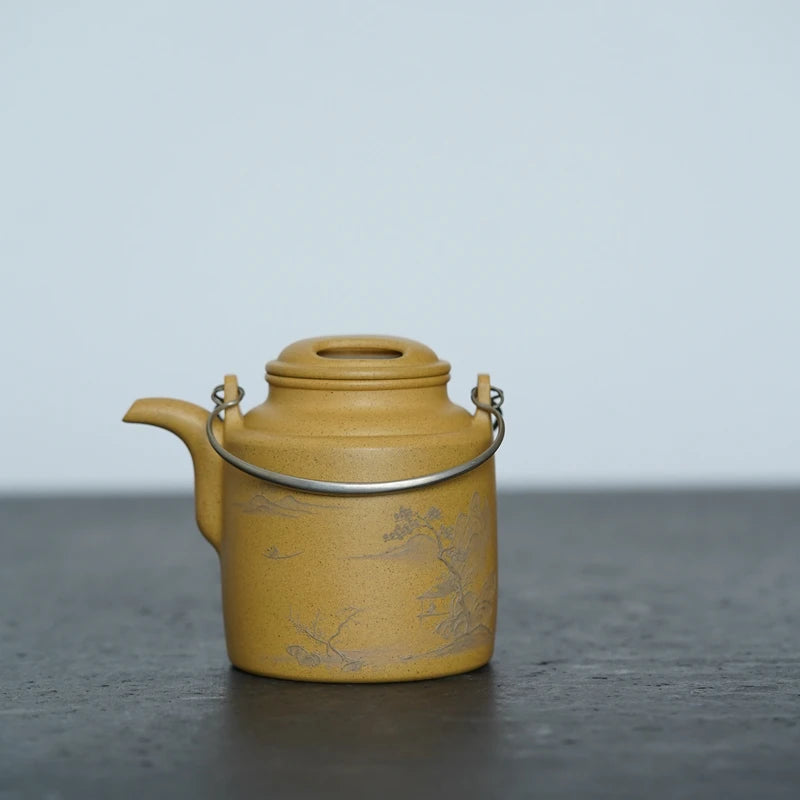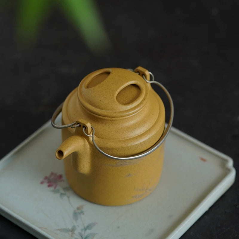 Zen Yuantang Ancient Style Mountain Cement Painted Cow Gayang Bucket Pot Yixing Handmade Purple Clay Pot Teapot Raw Ore Gold Seg