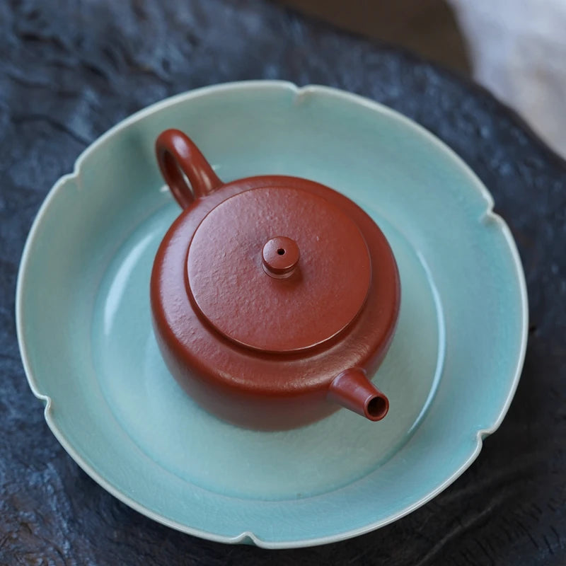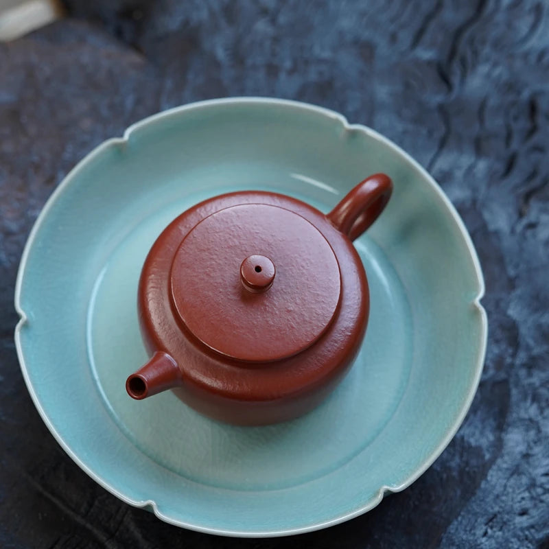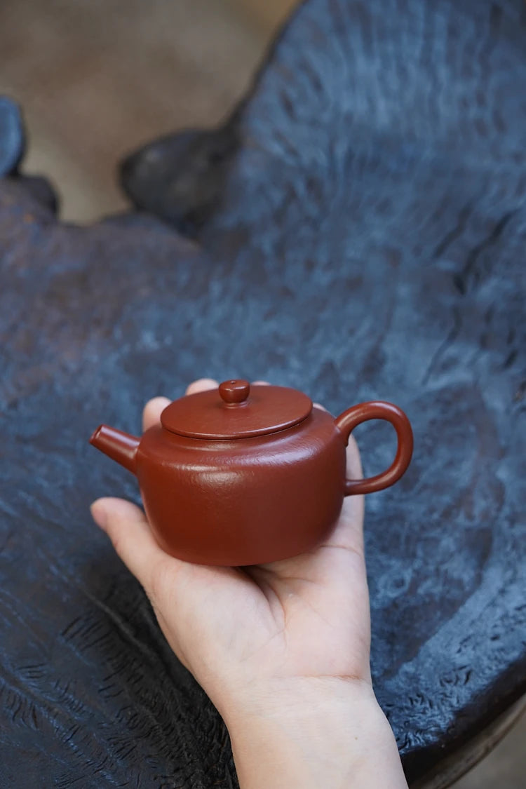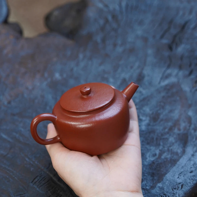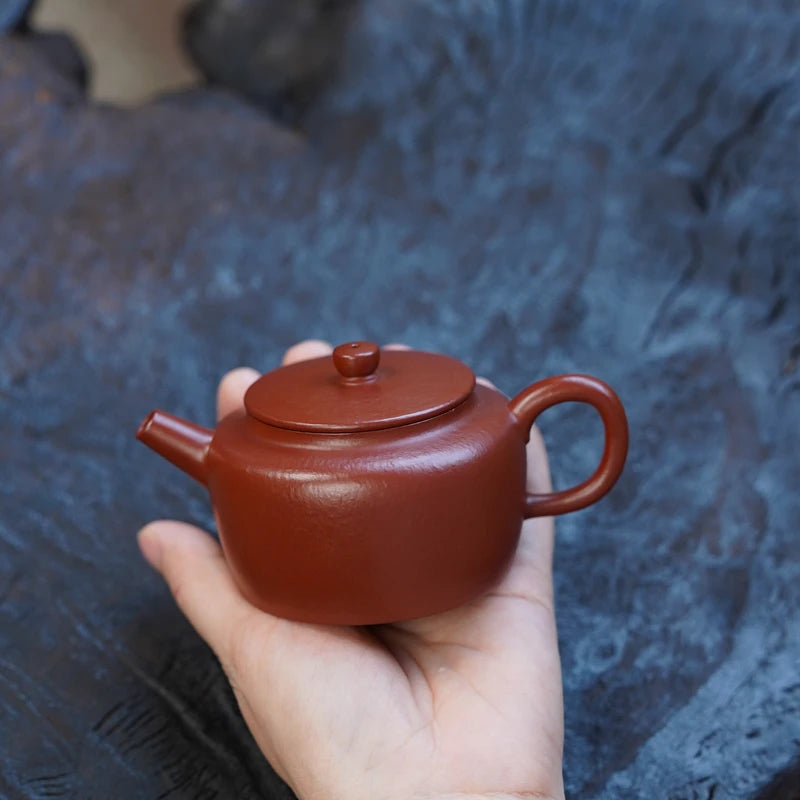 Zen Yuantang Wu Chengsang Flat Kettle Yixing Handmade Cinnabar Sand Small Purple Clay Pot Dahongpao Tea Pear Skin Cinnabar Sand