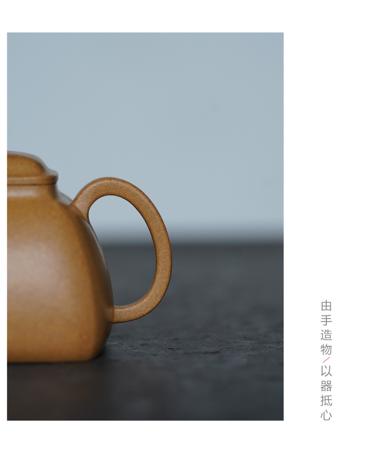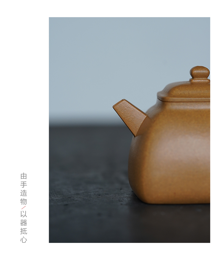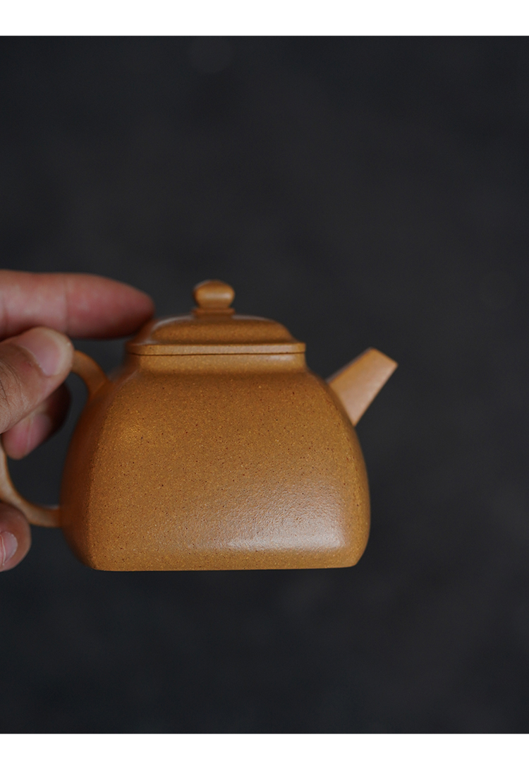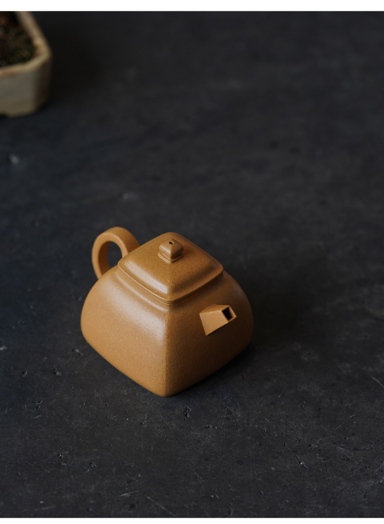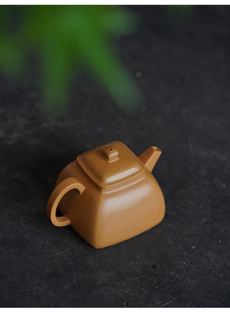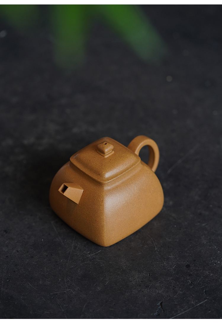 Zen Yuantang Yixing Handmade Purple Clay Teapot Vintage Chinese Raw Ore Gold Segment Mud Square Calm Pot