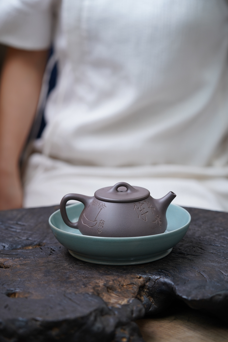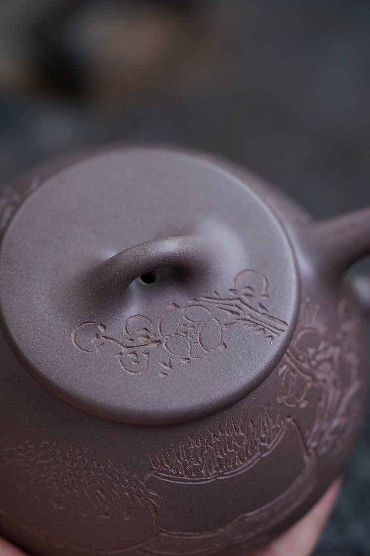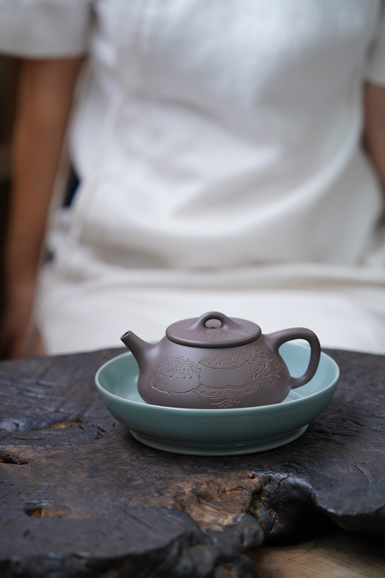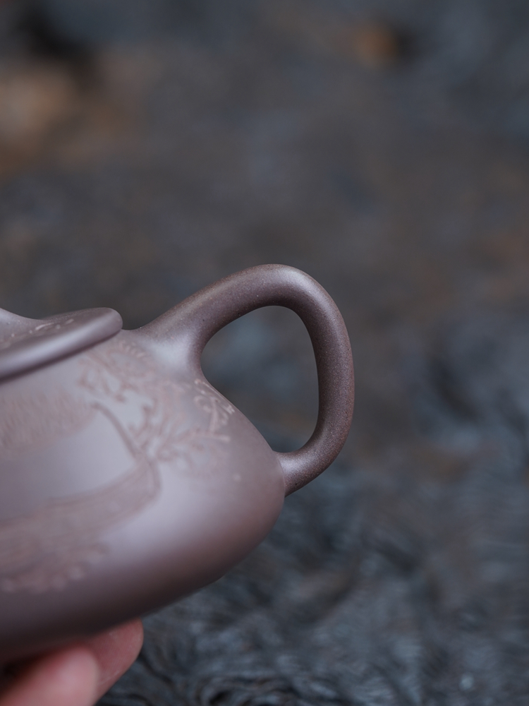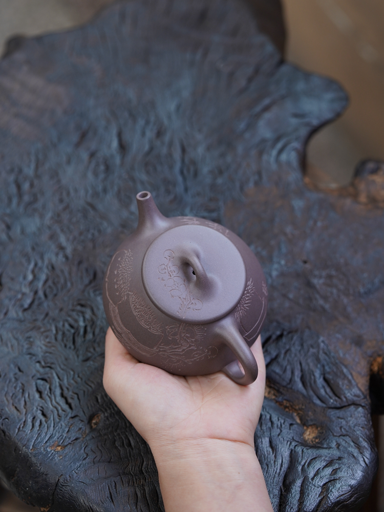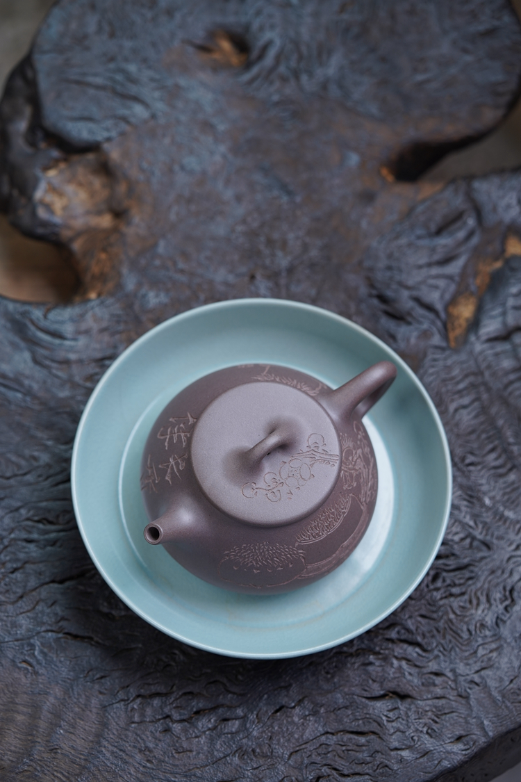 Zen Yuantang Yixing Purple Clay Pot Carving Flat Lid Shipiao Teapot Huanglongshan Raw Ore Daguitan Sky Blue Mash
