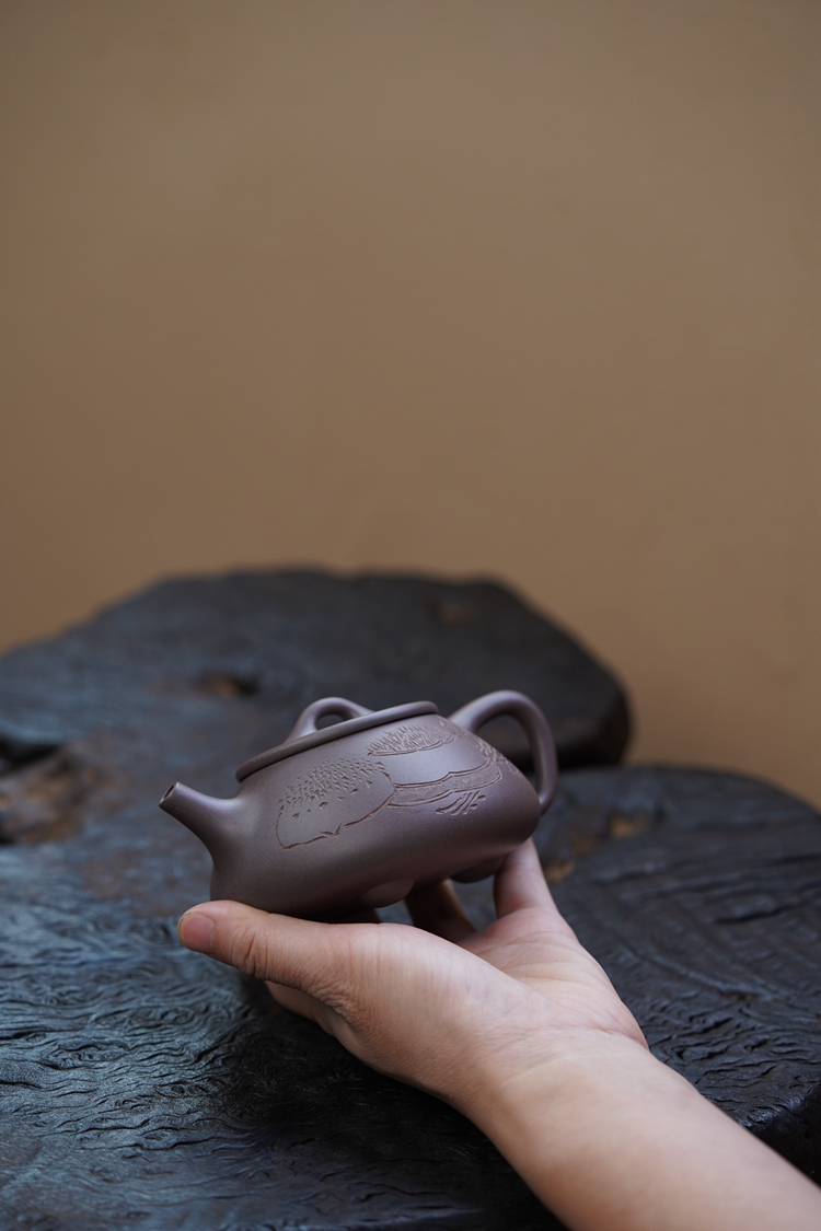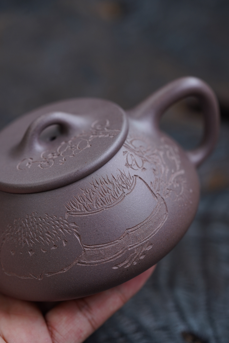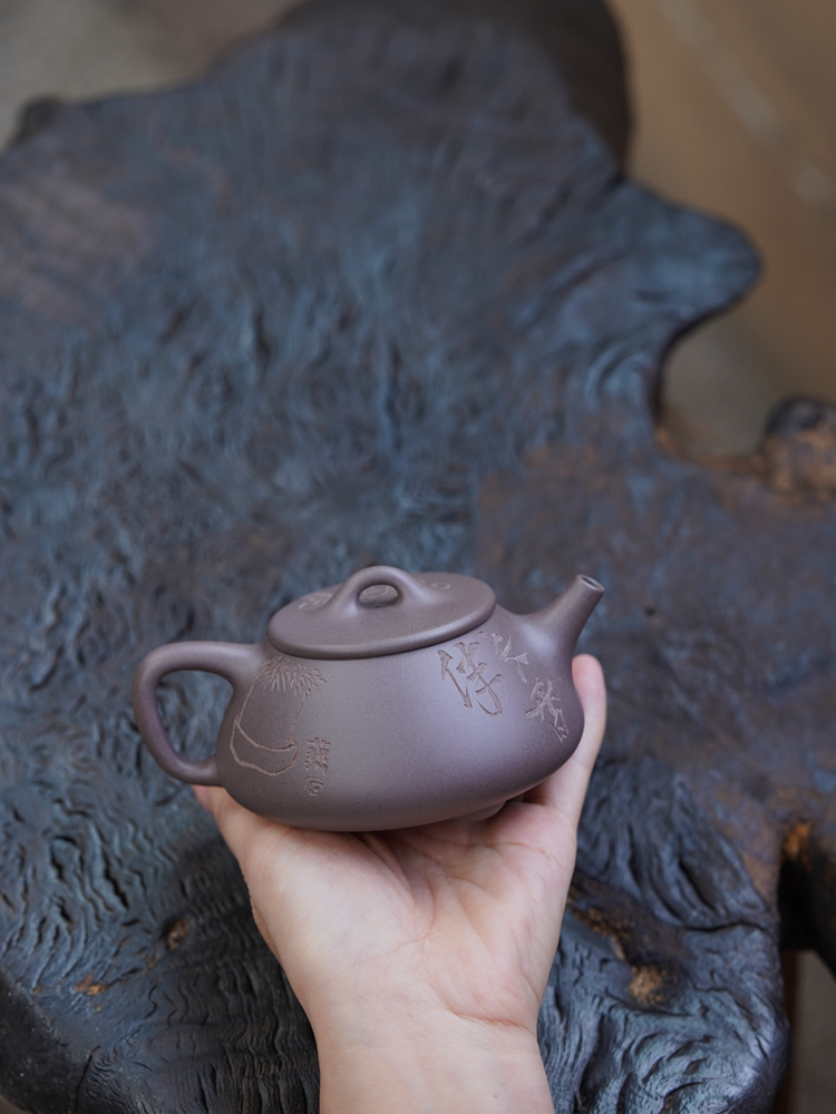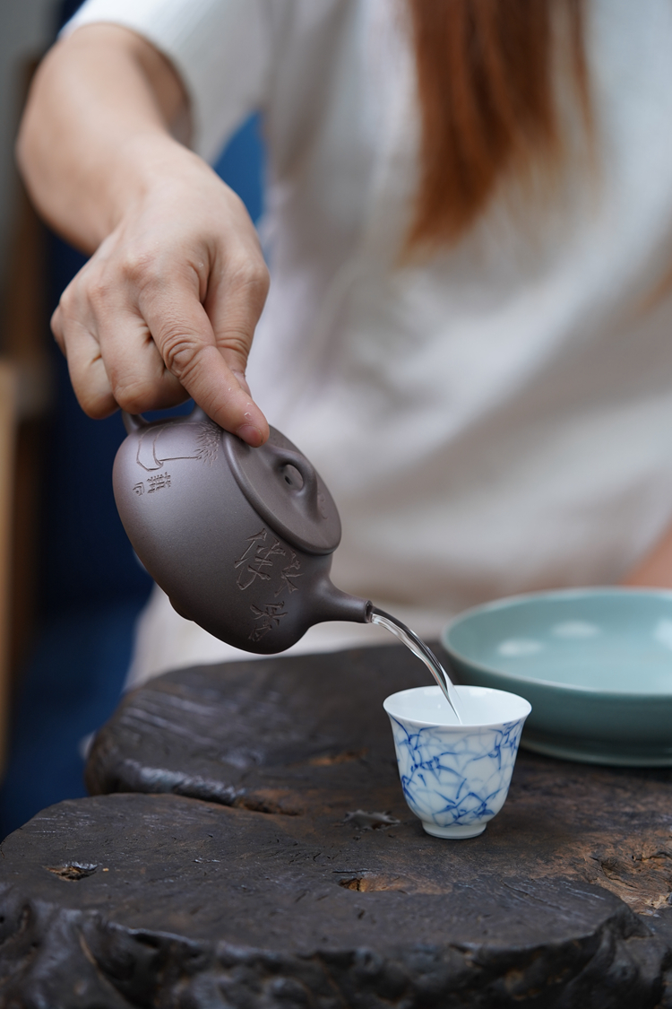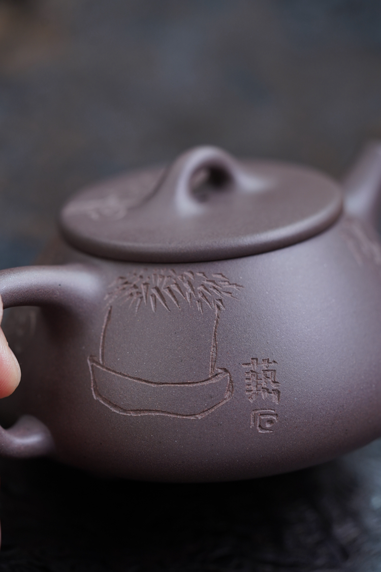 Zen Yuantang Yixing Purple Clay Pot Carving Flat Lid Shipiao Teapot Huanglongshan Raw Ore Daguitan Sky Blue Mash