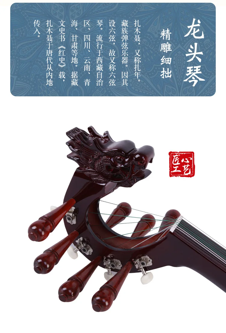 Zhamunie Six string lead eight string zhamunie Zhanmu Nie ethnic minority six string zhamunian dragon head Qin